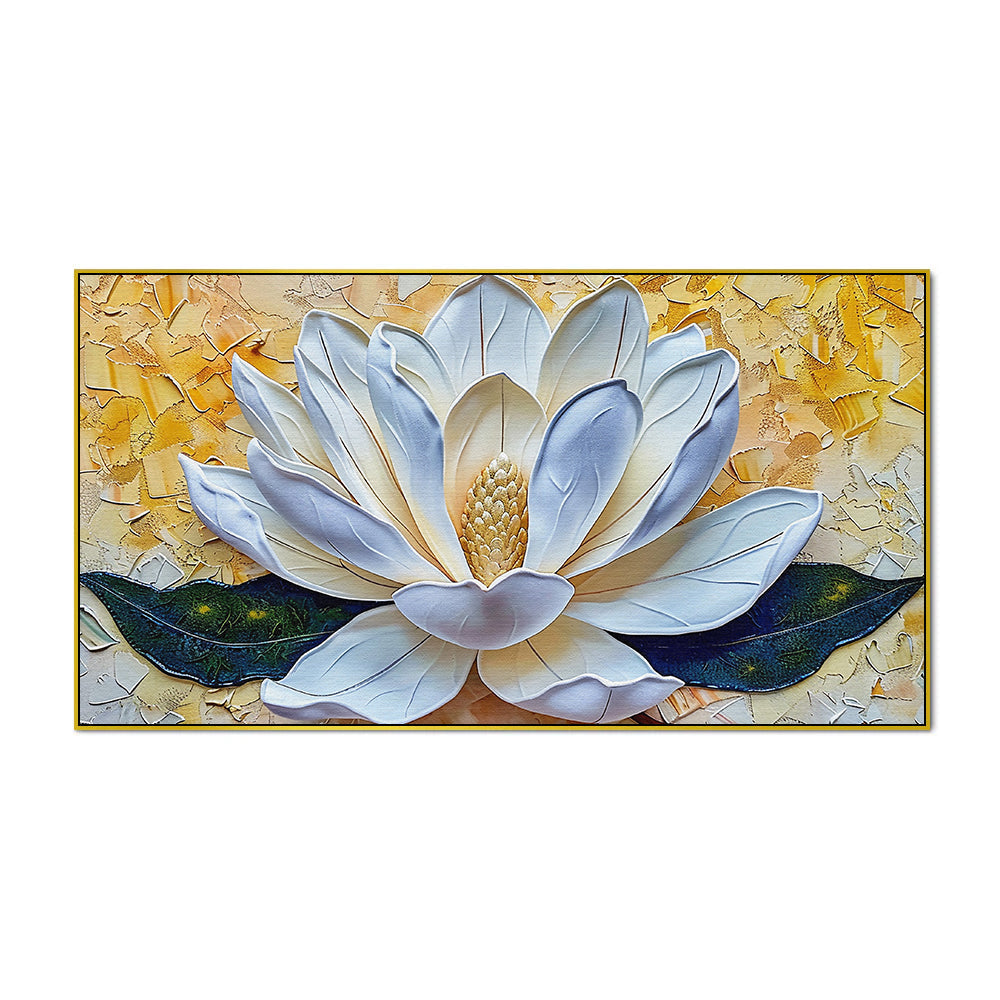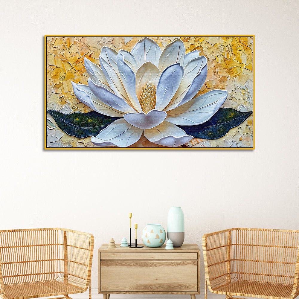 3d Abstract Elegant Golden & White Flower Floating Framed Wall Painting