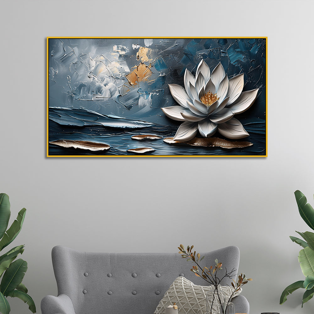 3d Abstract White Lotus Flower Artwork Water Lily Canvas Wall Painting
