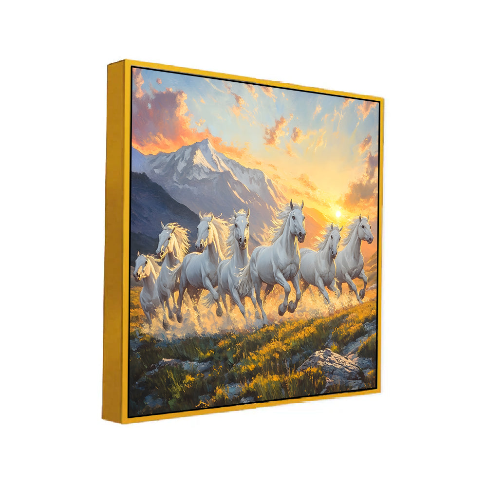 7 Running White Horses Vastu Inspired Canvas Wall Painting