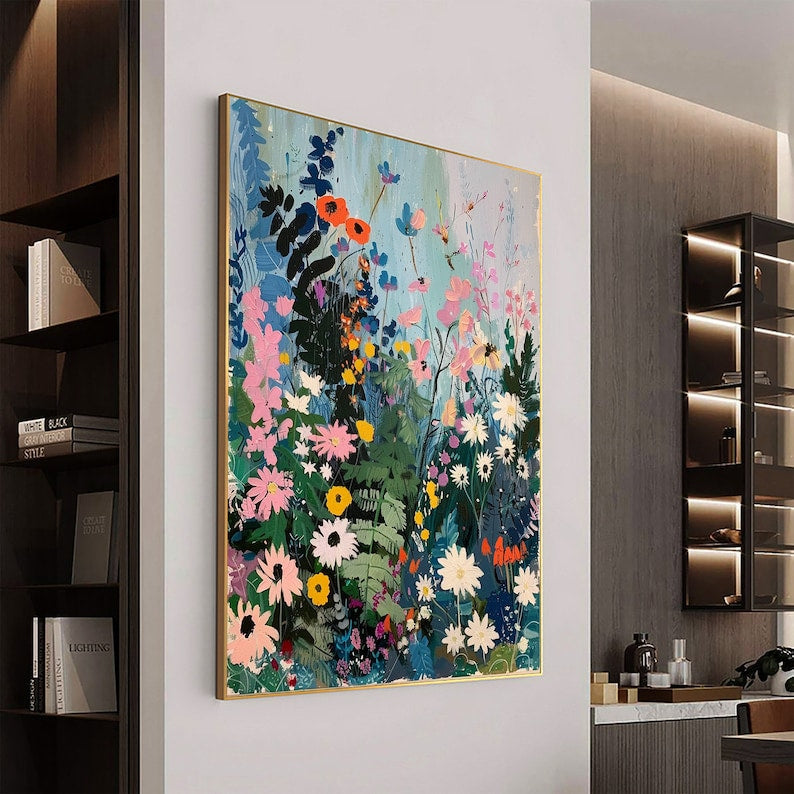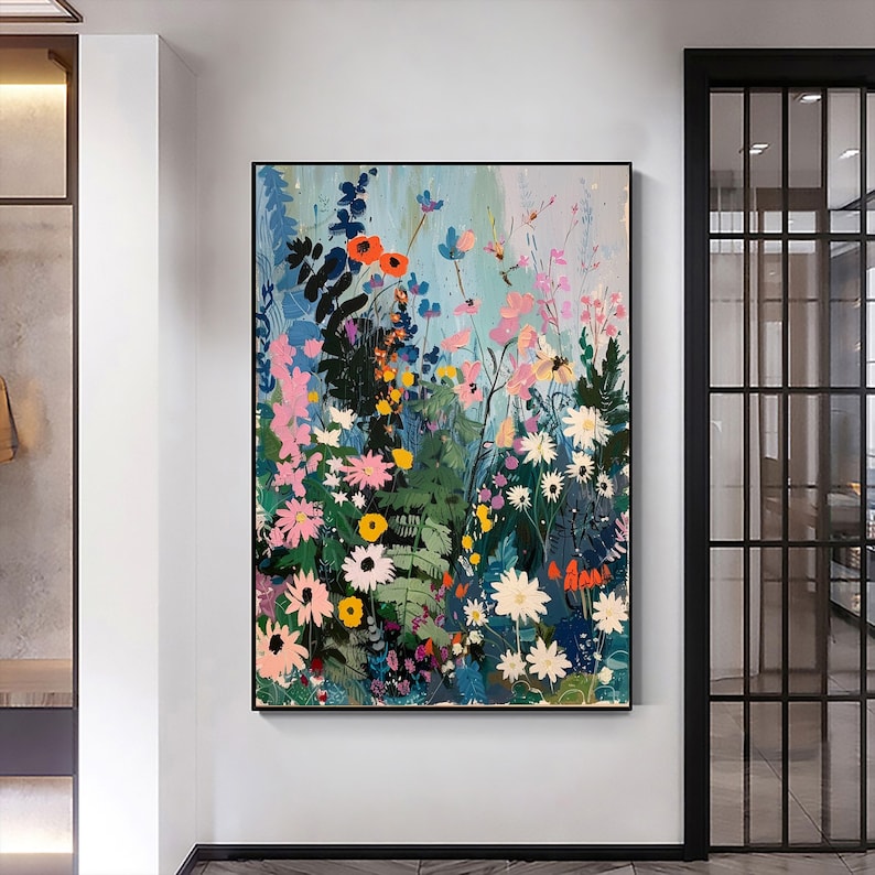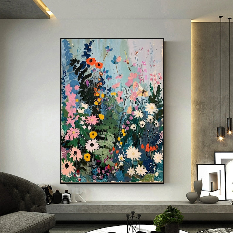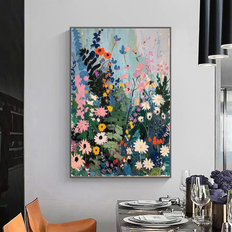 Abstract Blossom Floral Painting on Canvas, Original Large 3D Textured Flower Wall Art Custom Modern Fashion Living Room Bedroom Decor Online