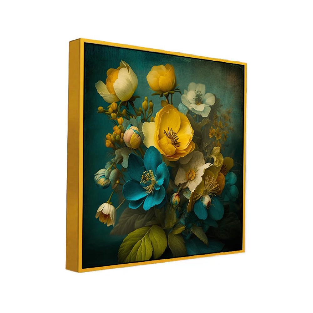 Abstract Blue and Golden Floral Canvas Wall Painting