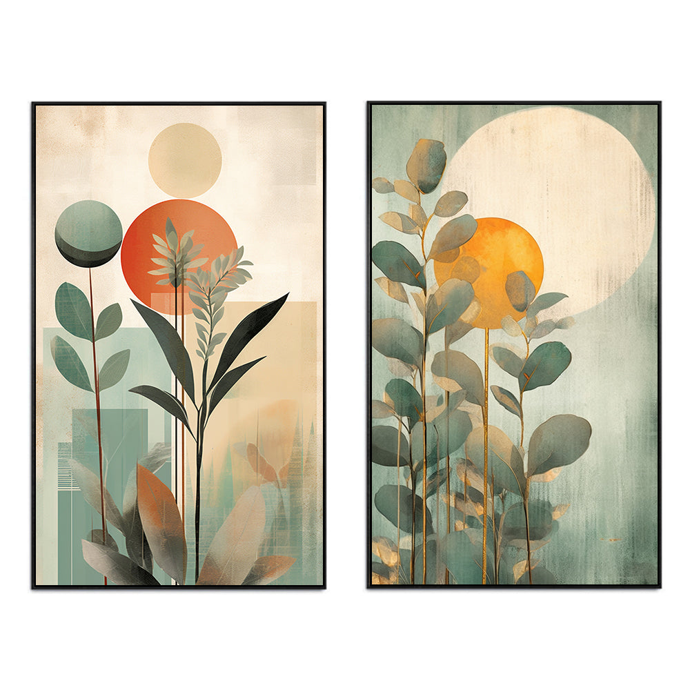 Abstract Boho Floral Modern Stylish Decorative Canvas Painting Two Pieces