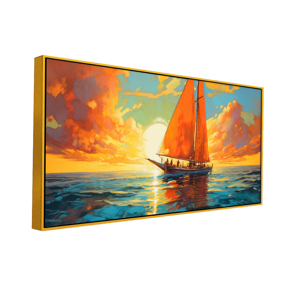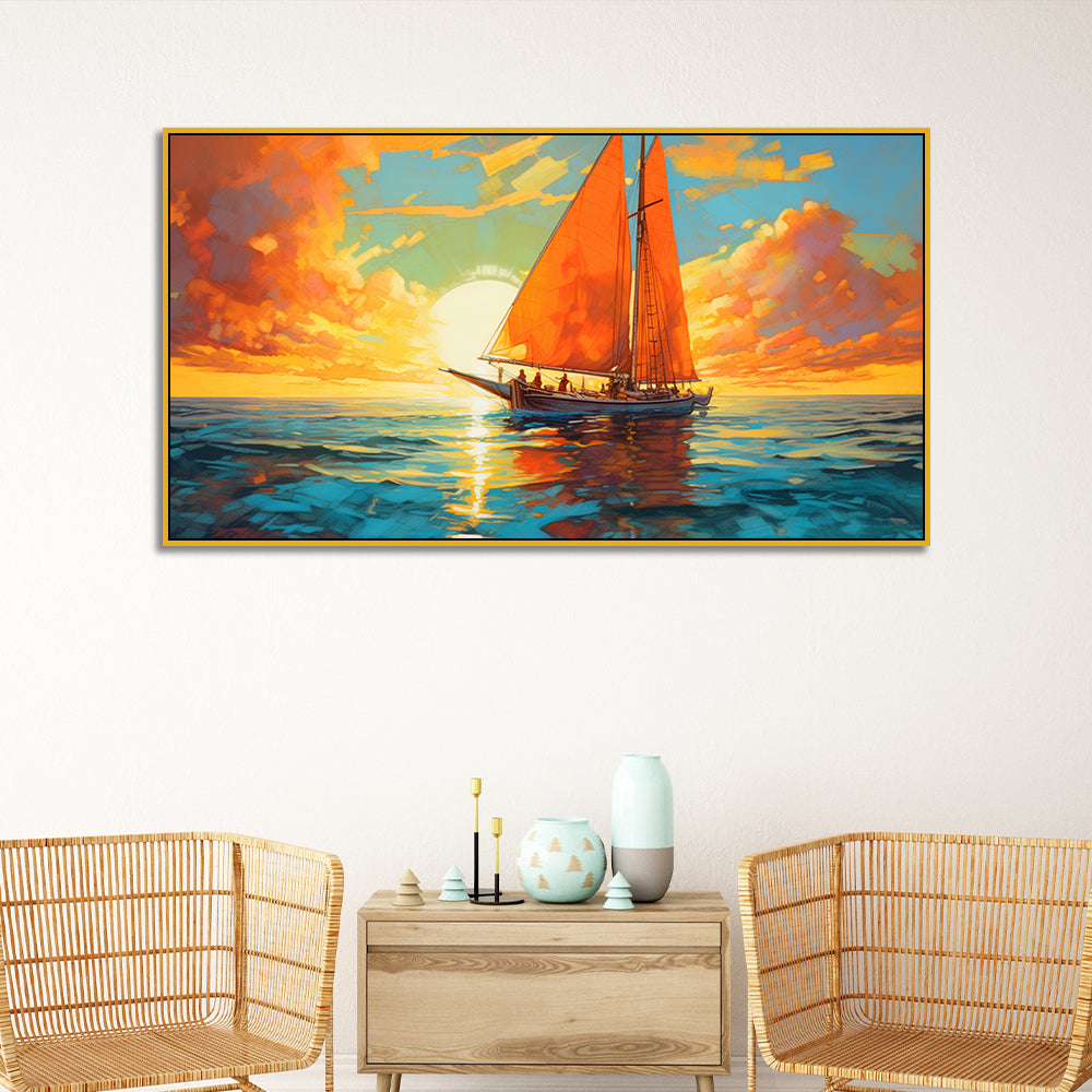 Abstract Canvas Painting of A Sailboat in the Ocean with a Sunrise