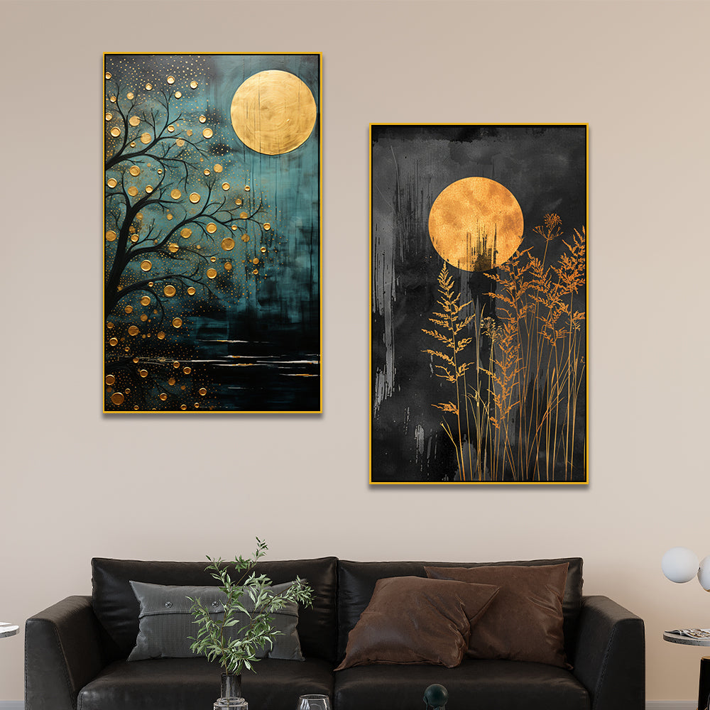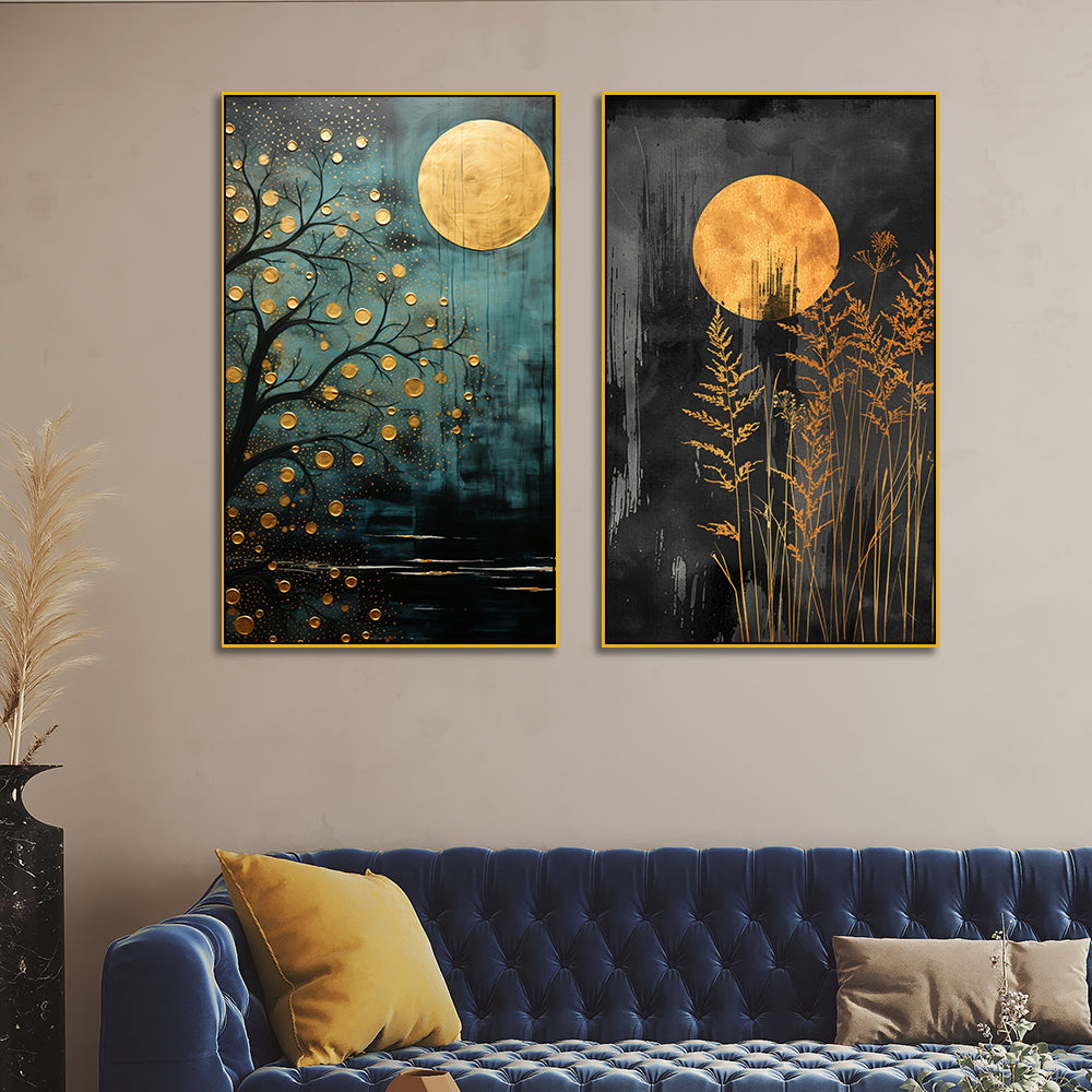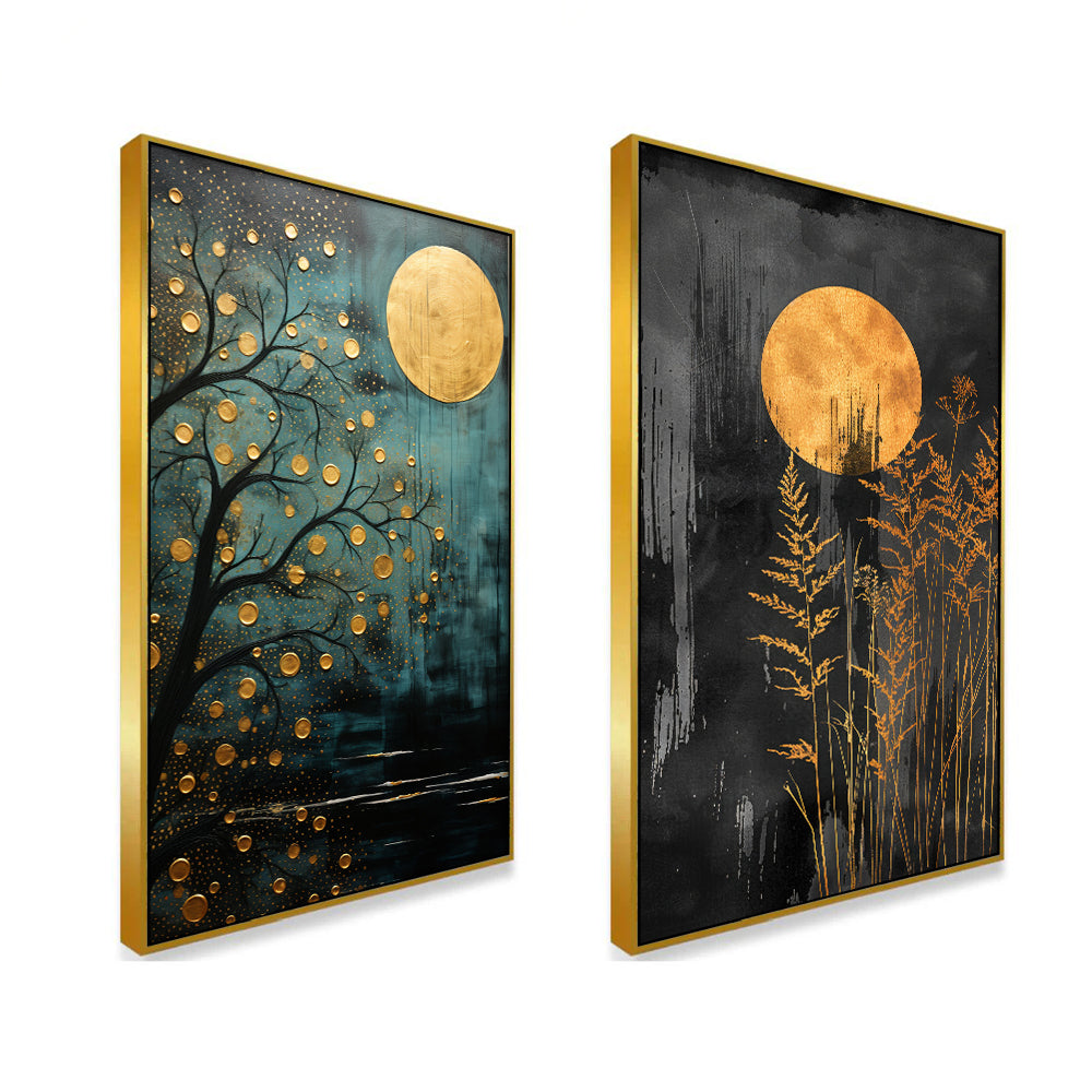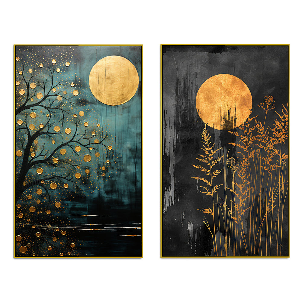 Abstract Golden Floral Tree Canvas Wall Decorative Painting Two Pieces