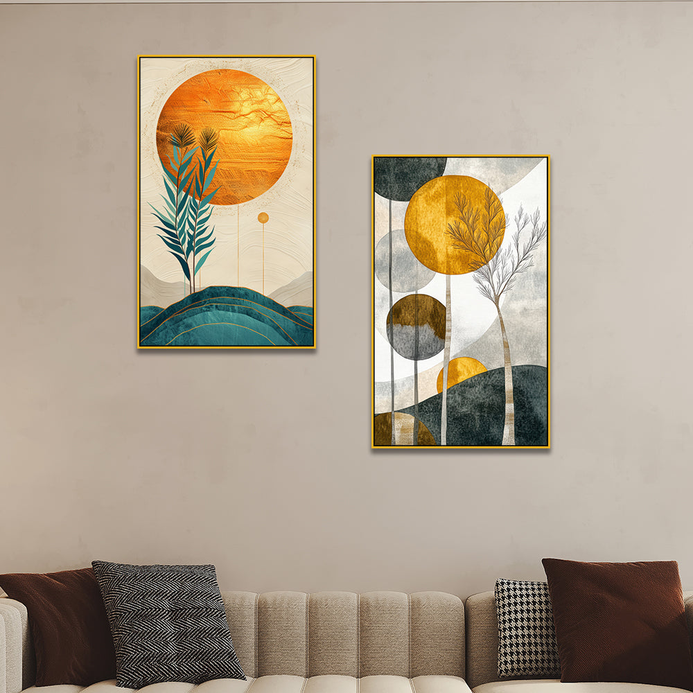 Abstract Golden Modern Canvas Wall Painting Two Pieces
