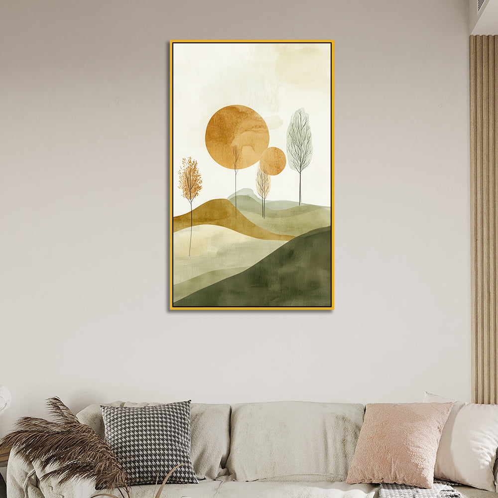 Abstract Nature Scene with Golden Circles Canvas Wall Painting