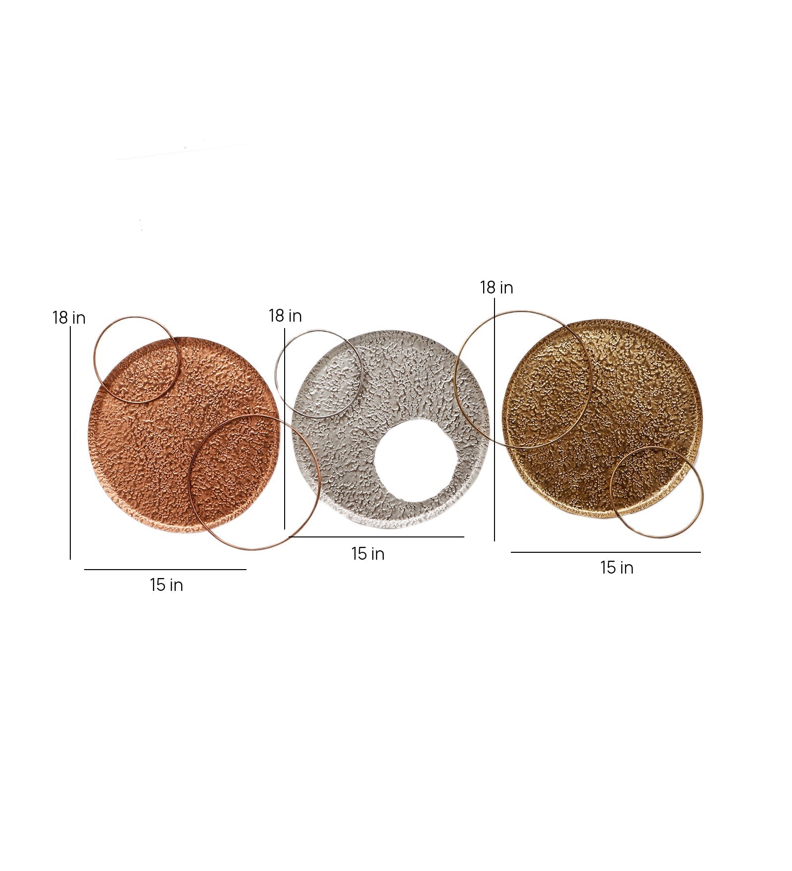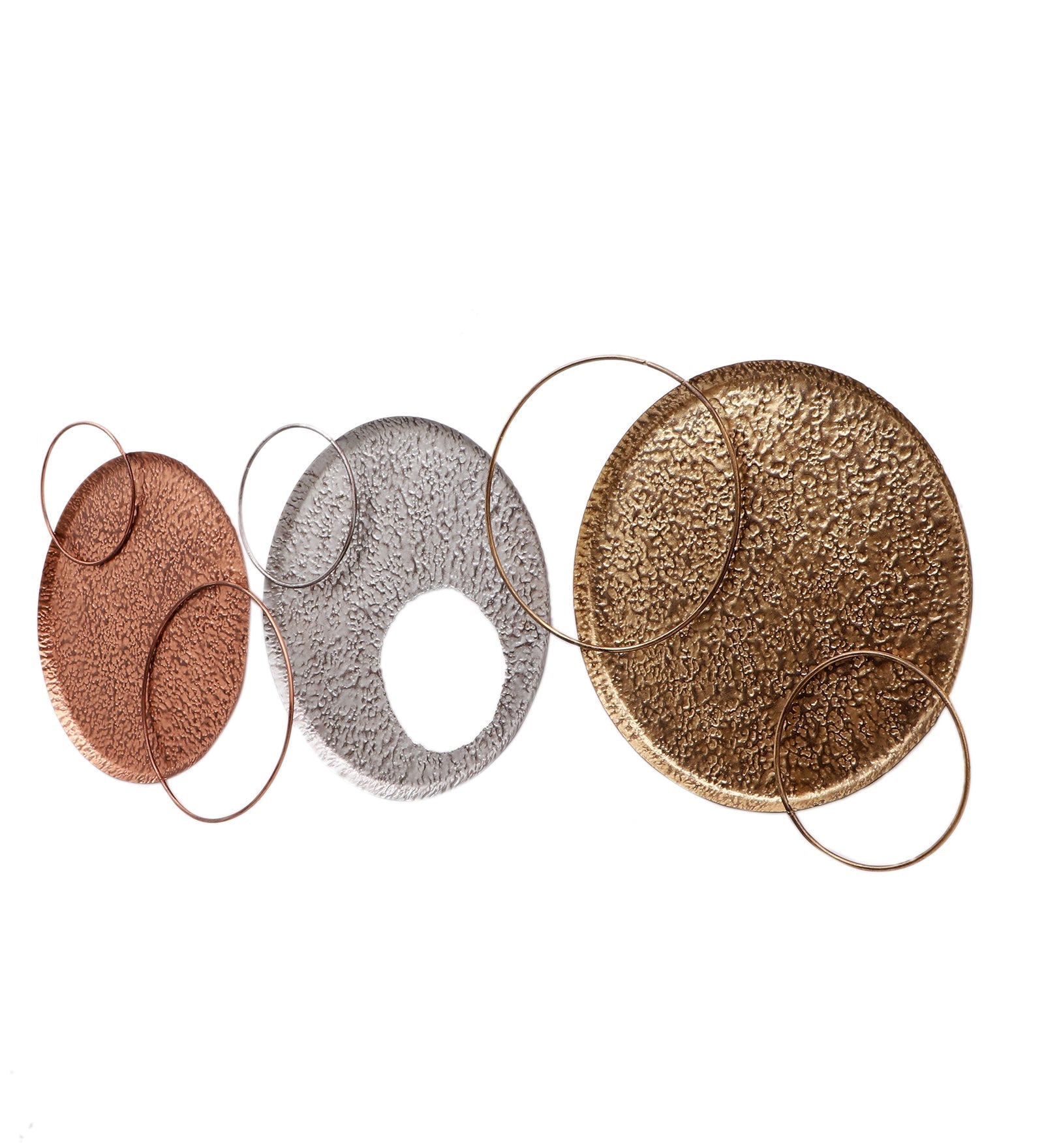 Gold, Copper & Silver Double Ring Wall Decor Set of 3