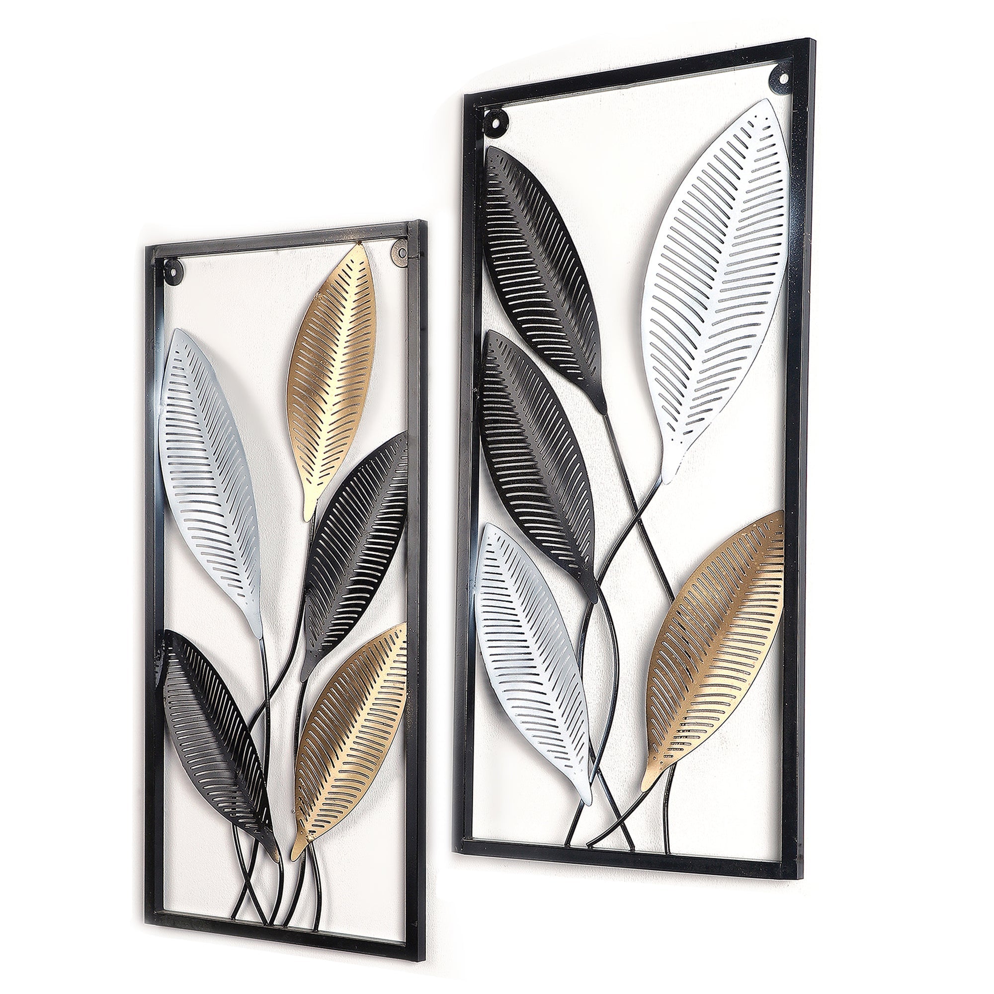 Rectangular Black, Gold, SIlver Leaves Wall Decor Set of 2
