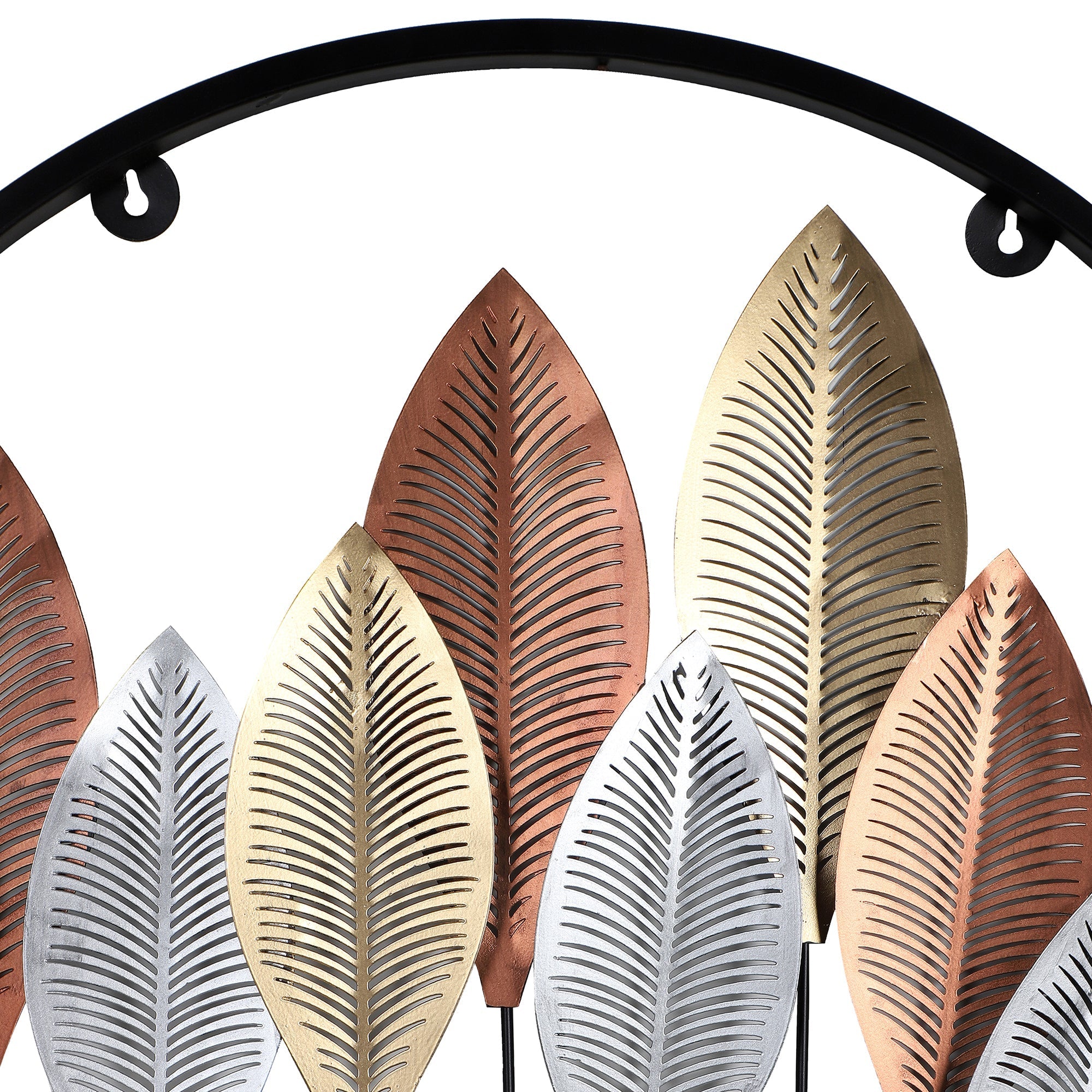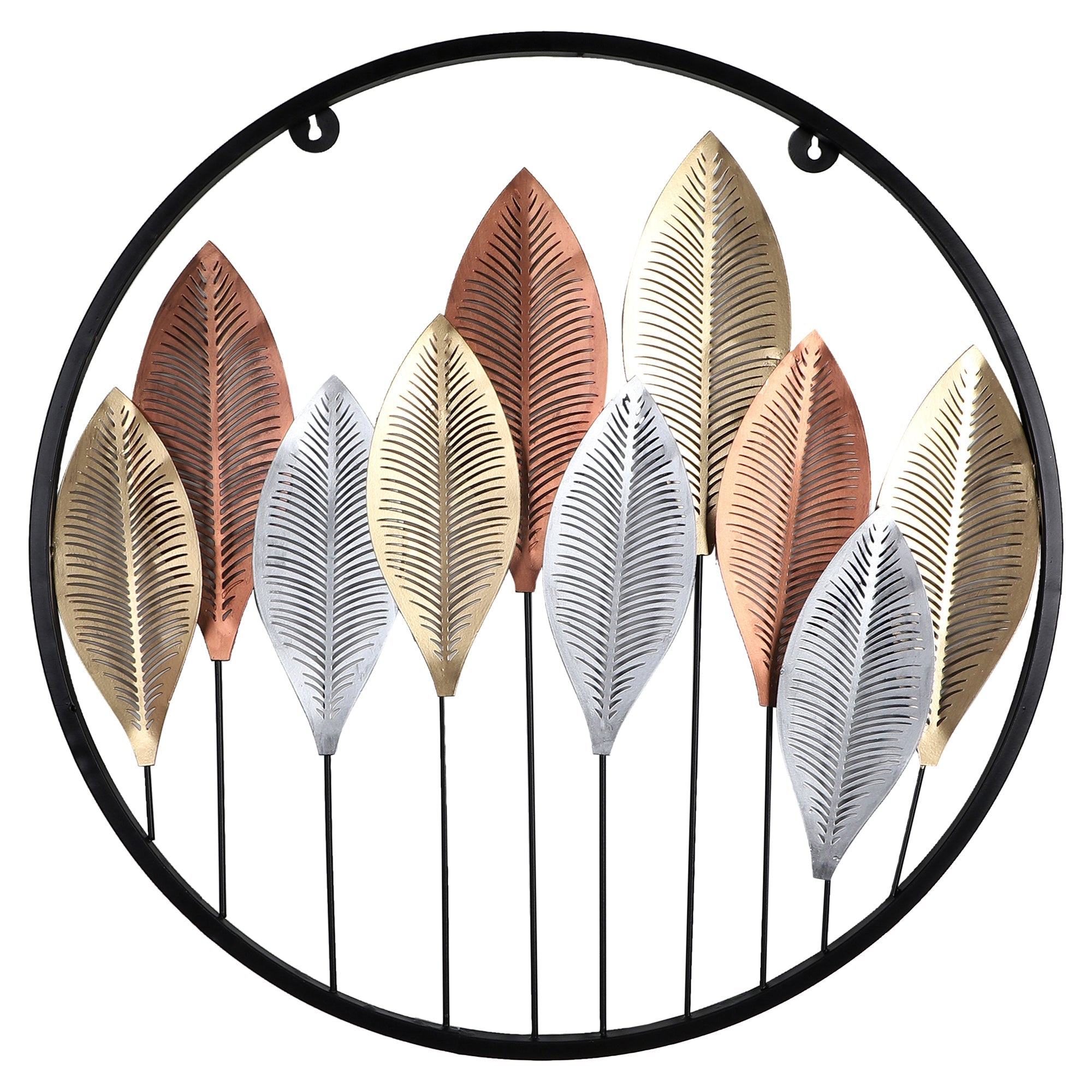 Round Gold Silver & Copper Etching Leaves Wall Decor