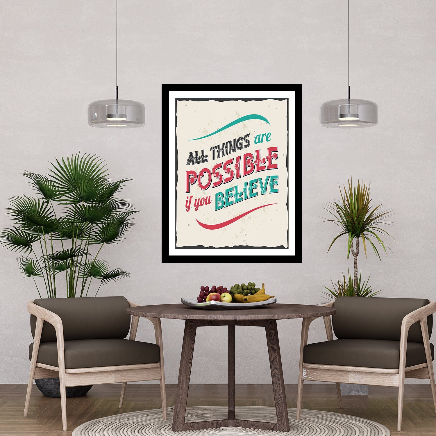 All Things Are Possible If You Believe Motivational Posters Wall Frames for Students, Business, Employees, Startup