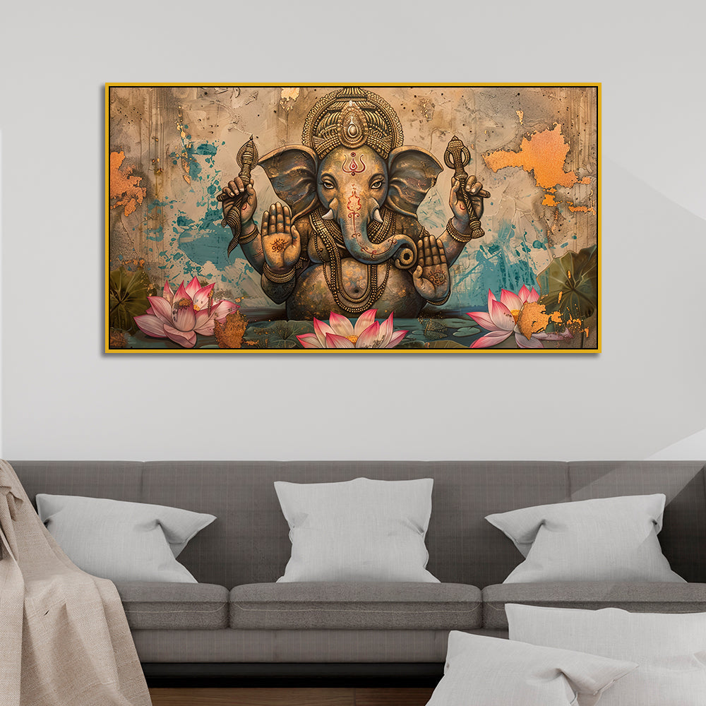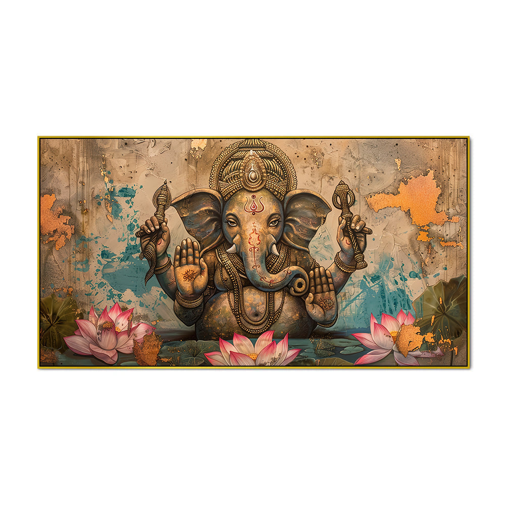 Antique Finish Ganesha Wall Frame – Timeless Art for Home