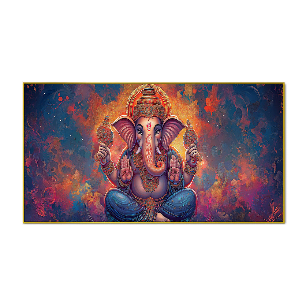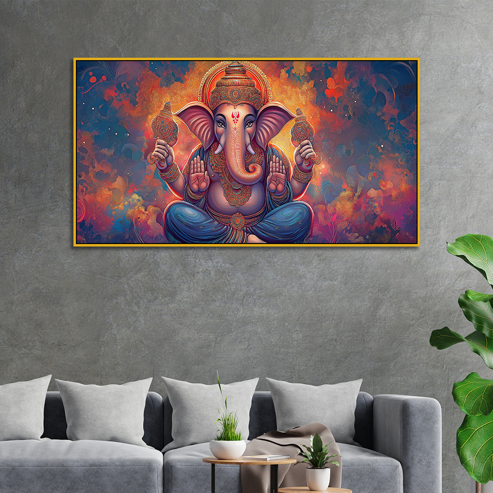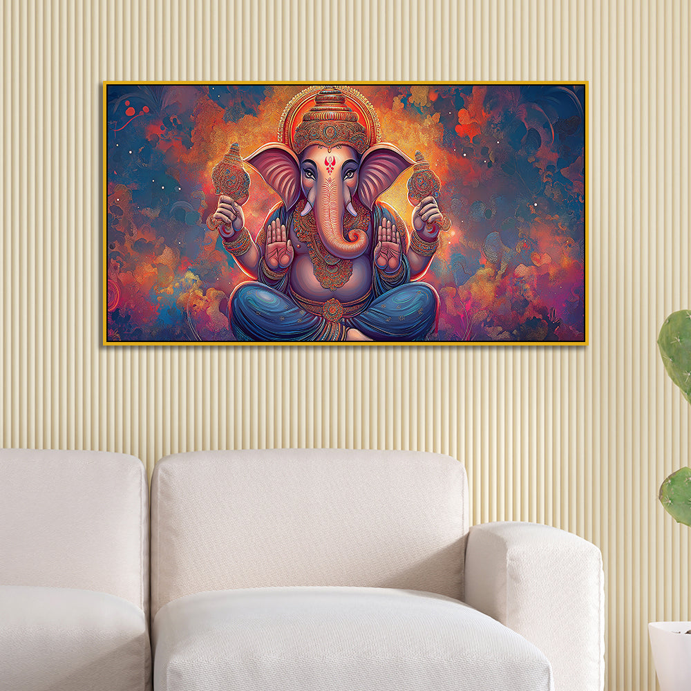 Antique Ganesha Painting on Canvas – Divine Wall Hanging