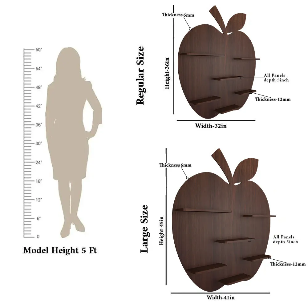 Apple Shape Backlit Wood Wall Shelf / Book Shelf / Night Light, Walnut Finish