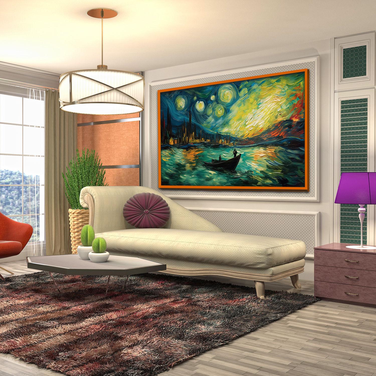 Beautiful Boat With Night Sky Background Canvas Wall Paintings