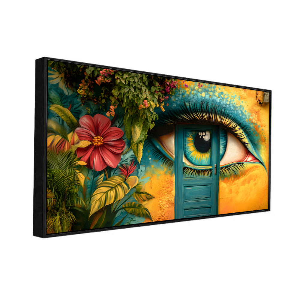 Beautiful Canvas Wall Painting of Bloom Flower Around Colorful Eye