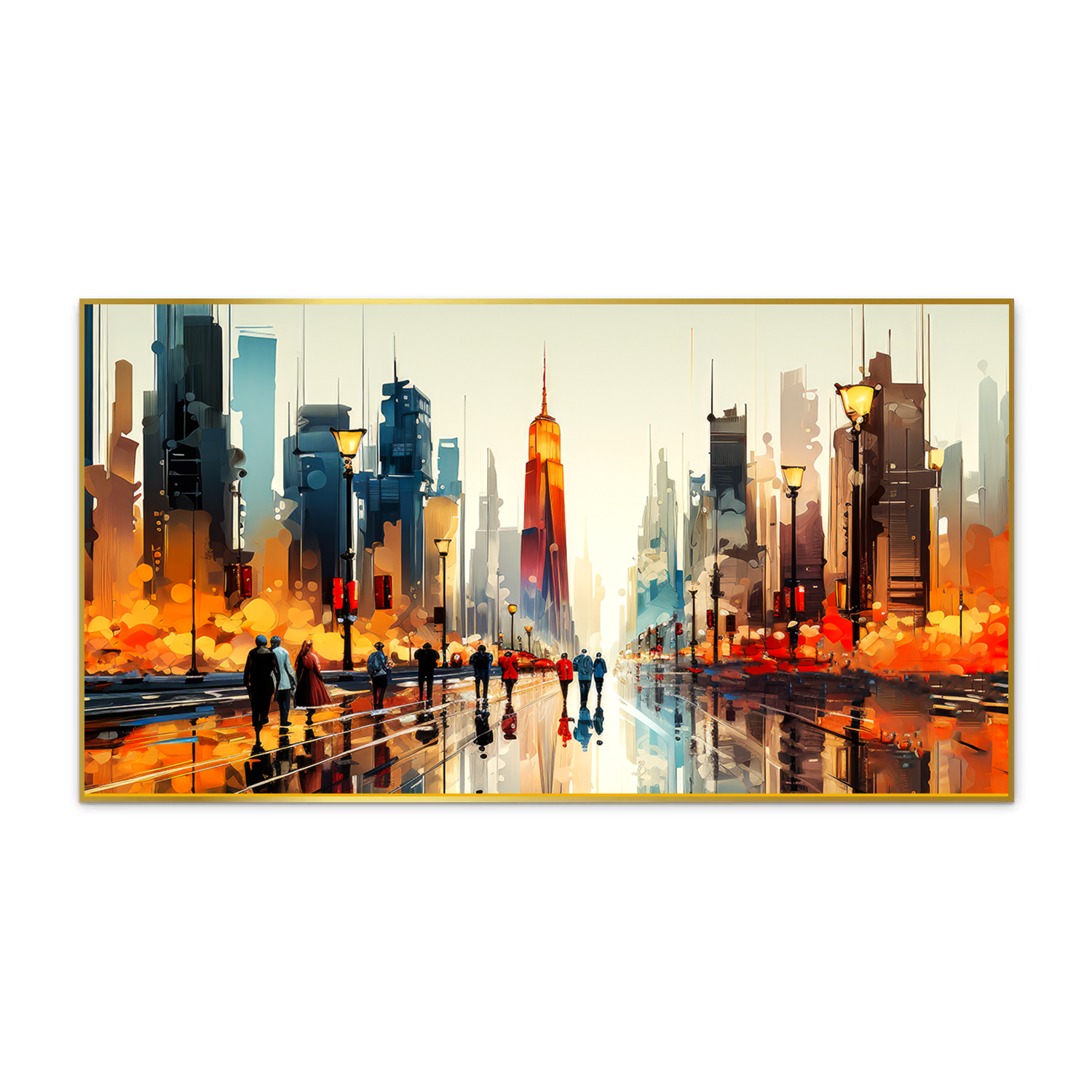 Beautiful Canvas Wall Painting with Skyscrapers Reflection in Water