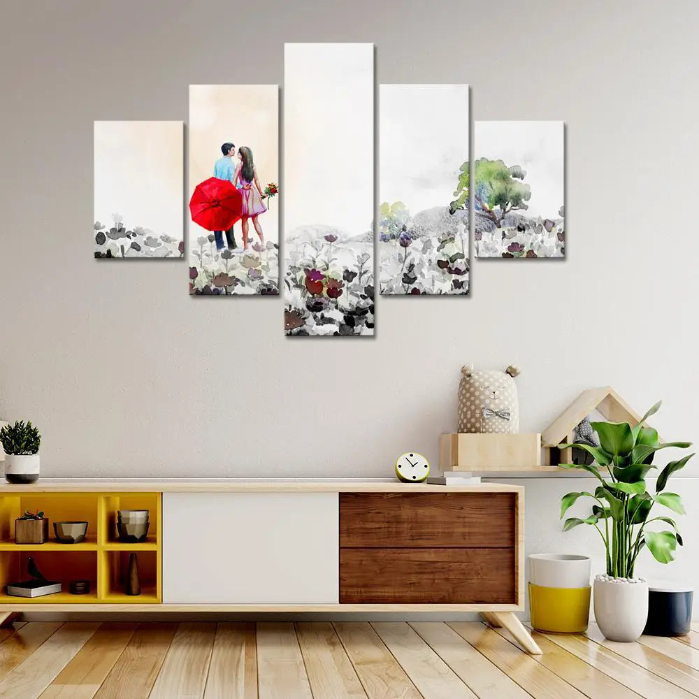 Beautiful Couple Painting Wooden Framed 5 Pieces Canvas Wall Painting