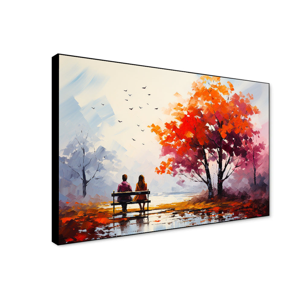 Beautiful Couple Sit on A Bench and Look at The Mountains Canvas Wall Paintings & Arts