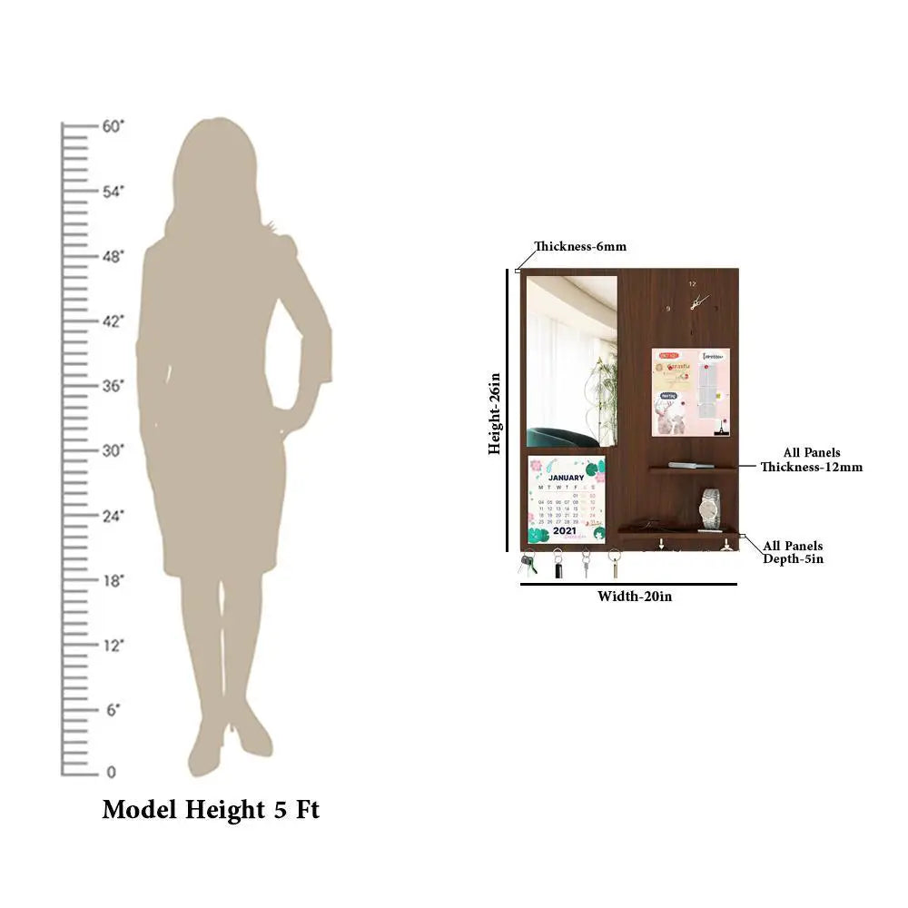 Beautiful (7 In One)' Wooden Wall Organiser With Mirror, Key hangers, Coat Hangers, Pin Board, Clock, Calendar