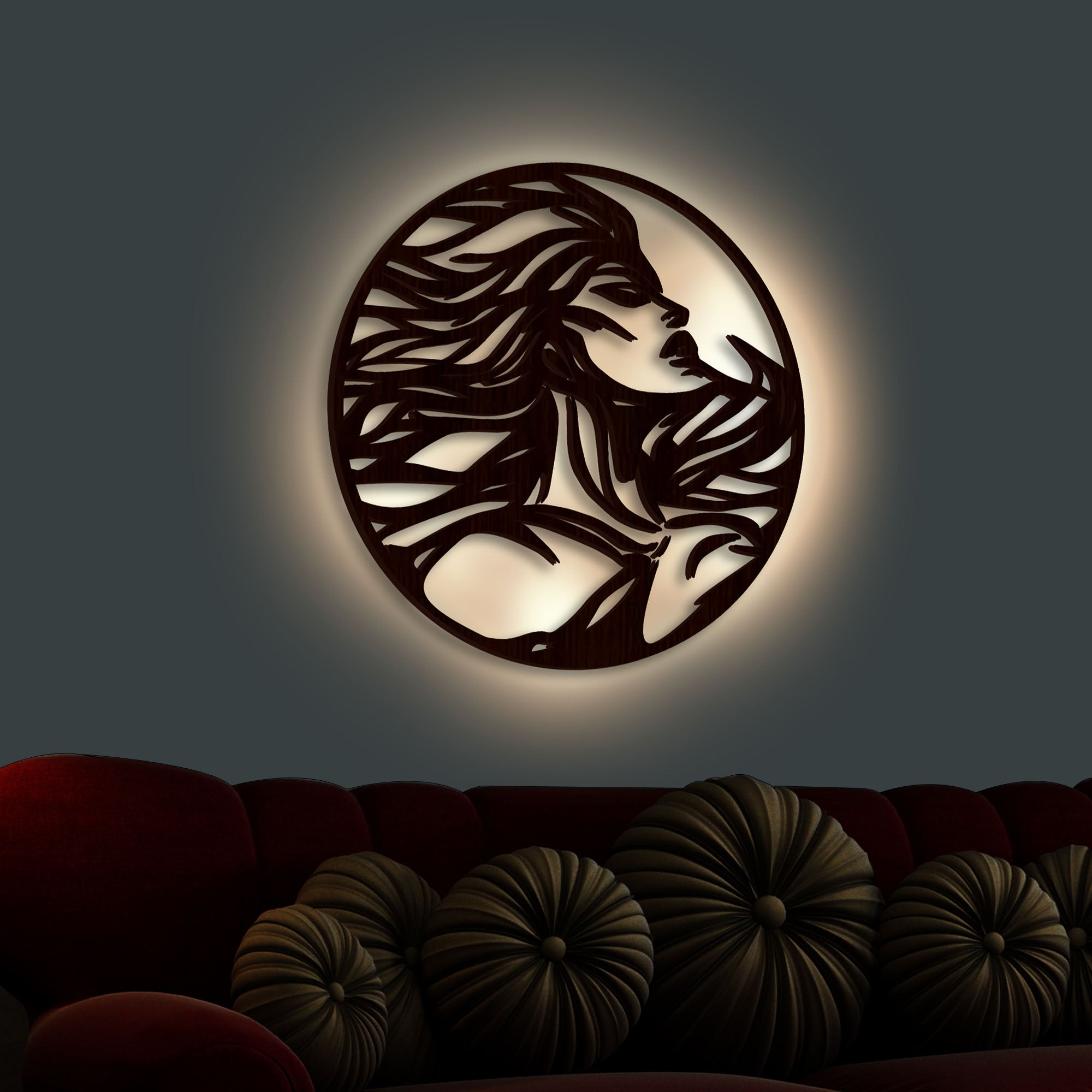 Beautiful Design Modern Backlit Art Wooden Wall Hanging with LED Night Light Walnut Finish