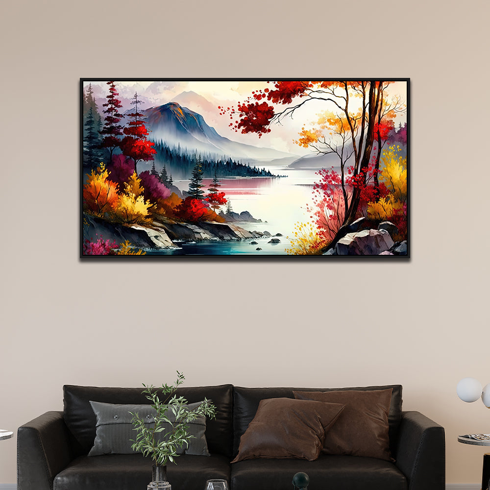 Beautiful Lake with Mountain Multicolor Nature Floating Framed Wall Painting