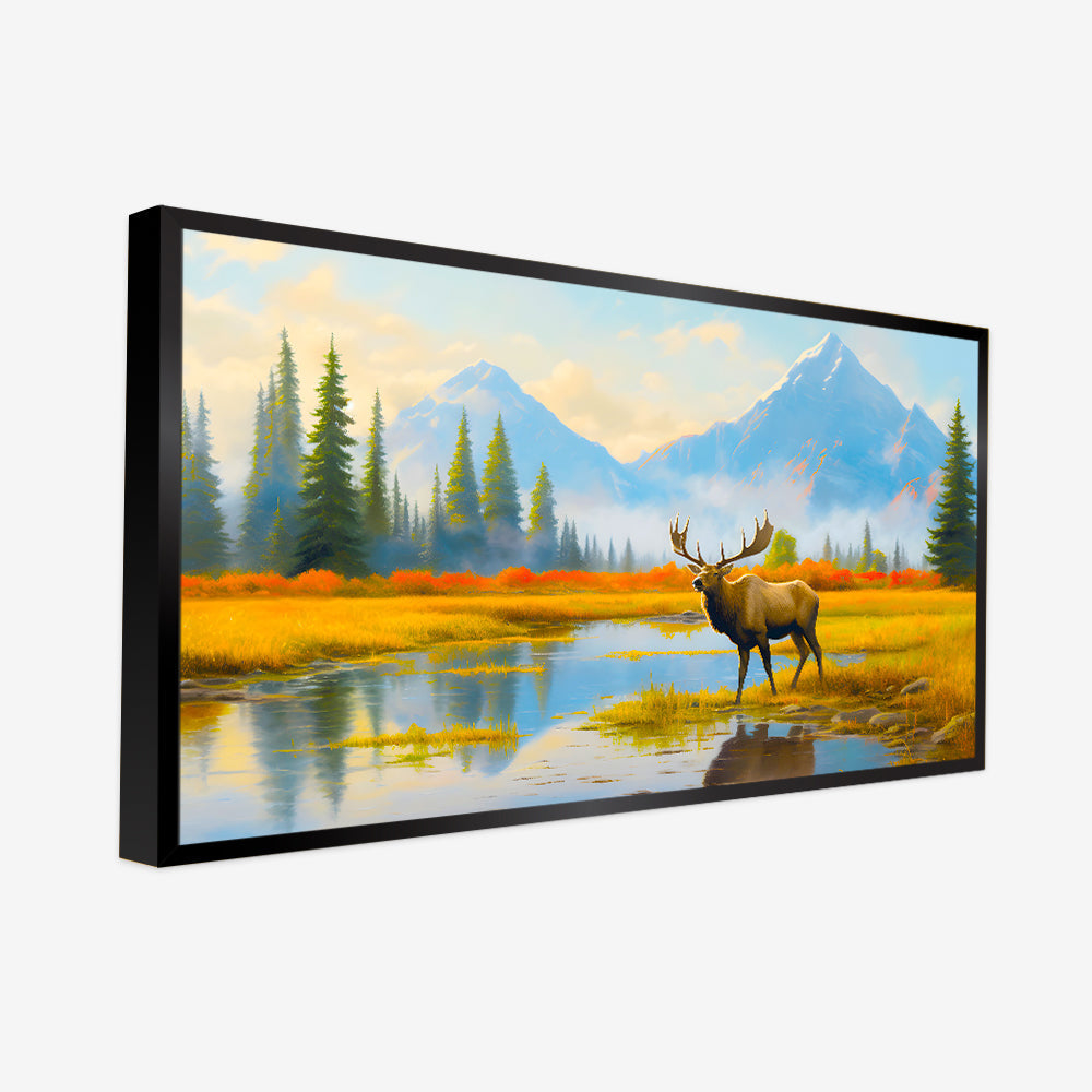Beautiful Mountain and Moose Standing in A Marsh Canvas Printed Wall Paintings