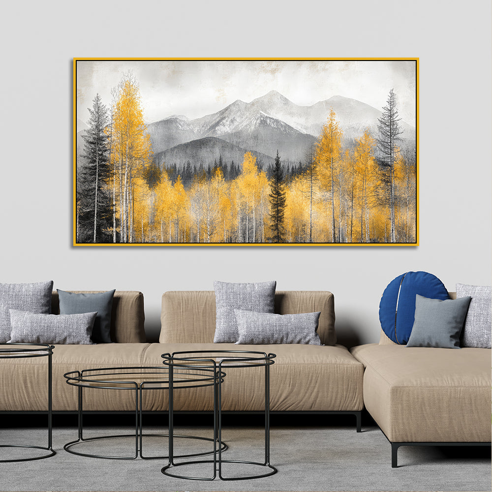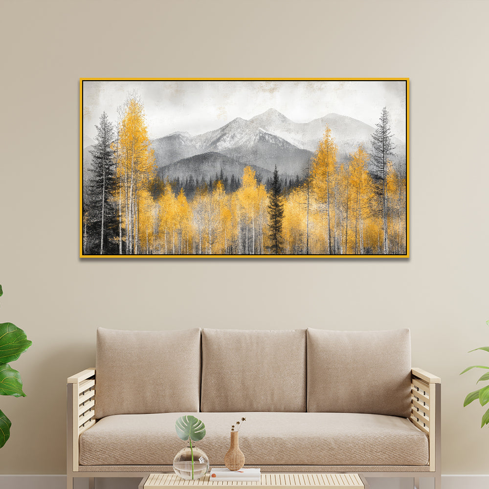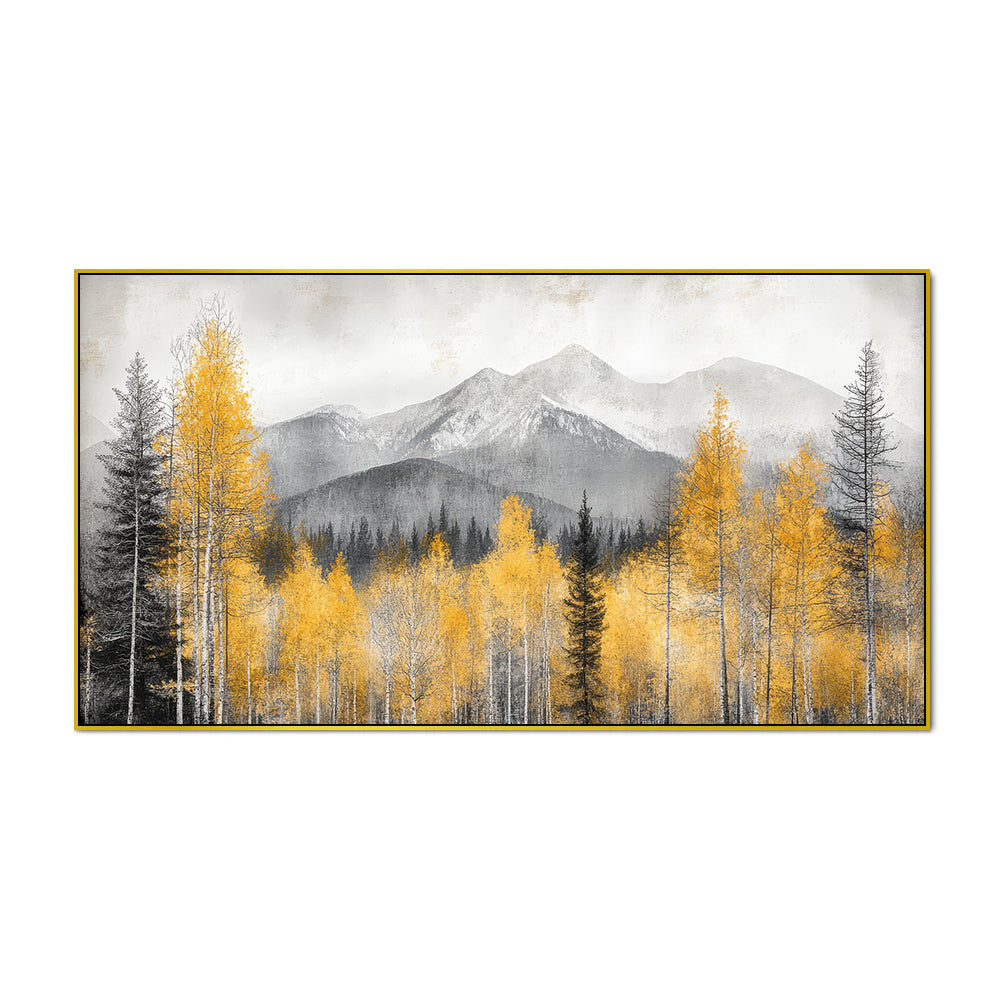 Beautiful Painting of Mountain Covered in Clouds and Trees