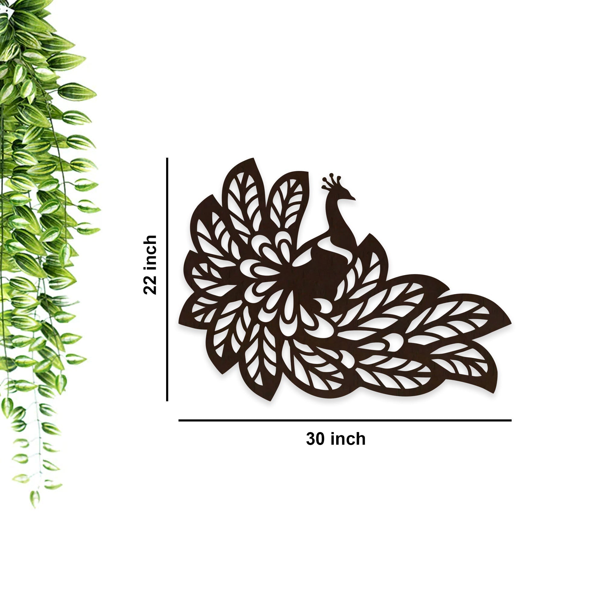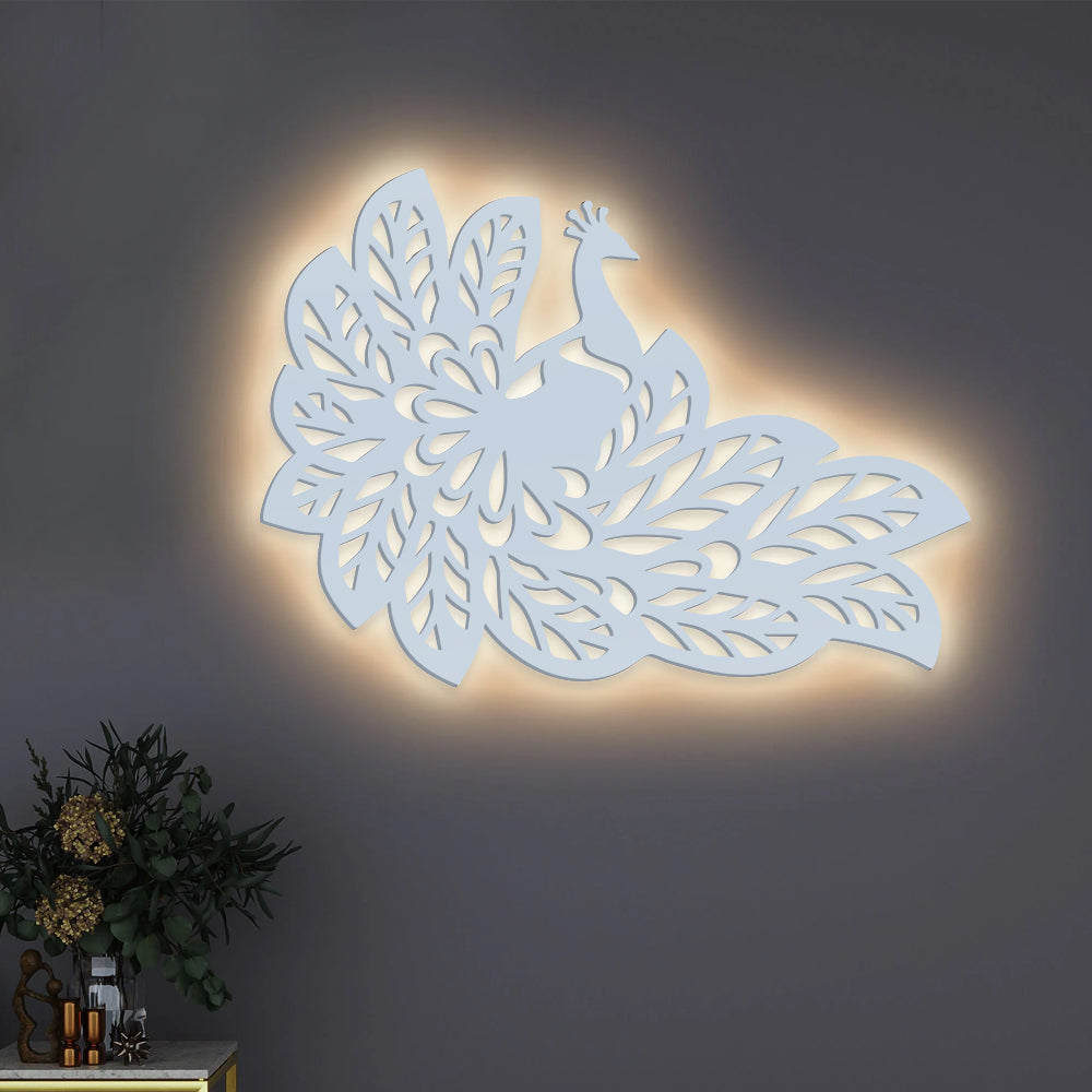 Beautiful Peacock Wings Designer Art Backlit Wooden Wall Decor with LED Night Light Walnut Finish