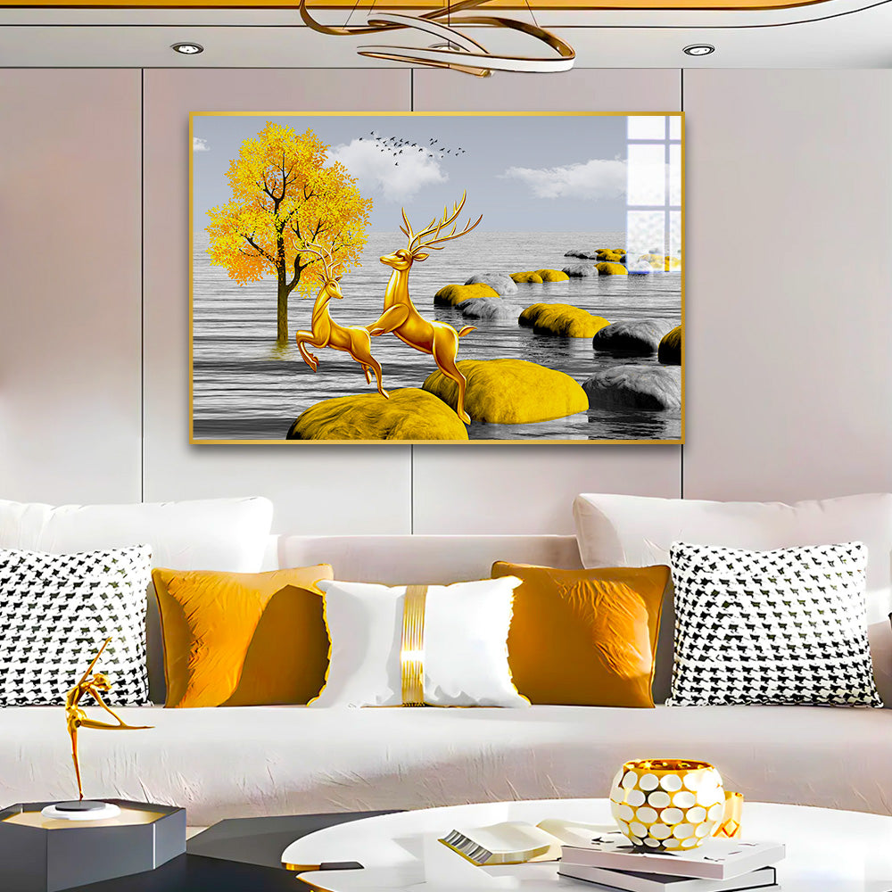Beautiful Premium Golden Deer Running Acrylic Wall Paintings & Arts