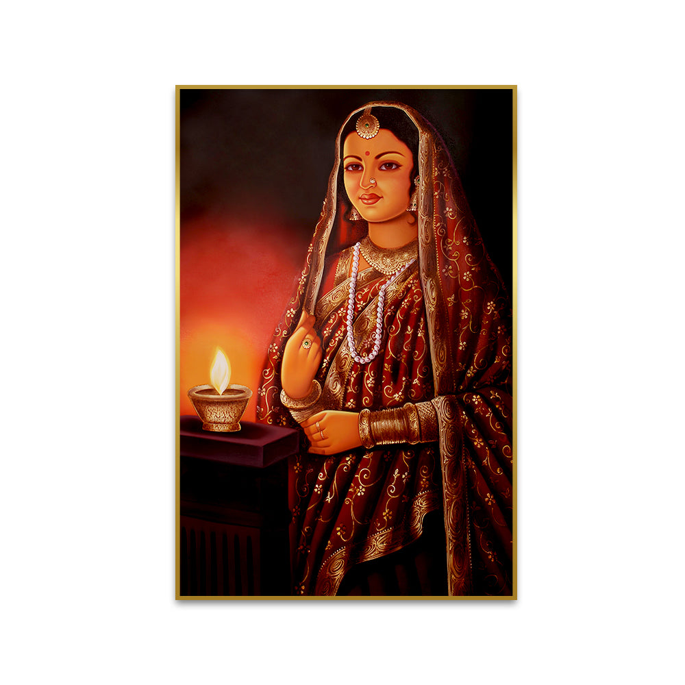 Beautiful Rajasthani Lady with Lamp Canvas Printed Wall Paintings & Arts