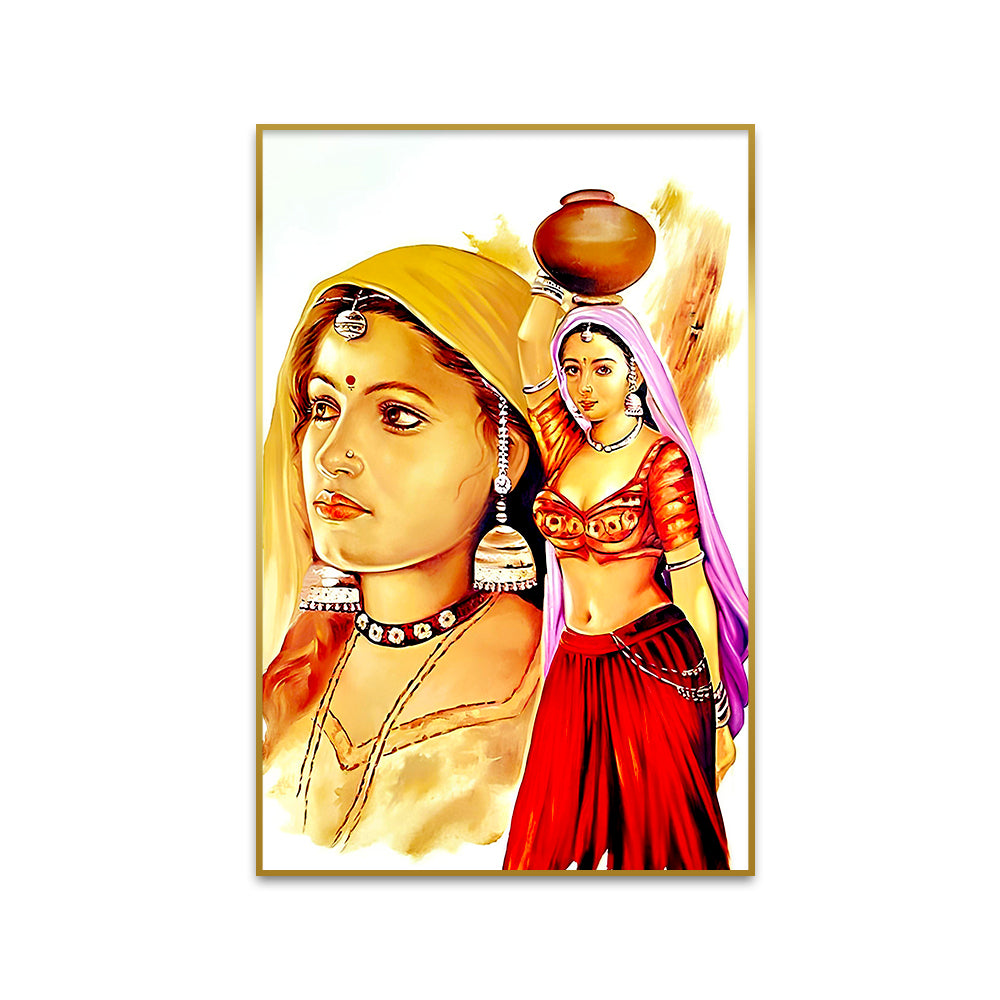 Beautiful Rajasthani Village Women With Pot Canvas Printed Wall Paintings & Arts
