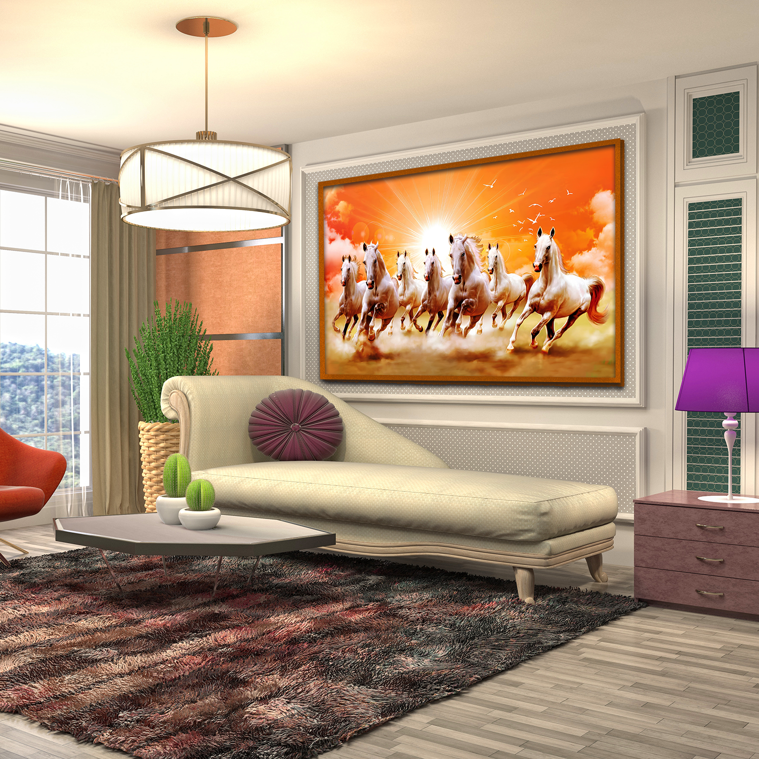 Beautiful Seven Running Horses Canvas Big Wall Paintings