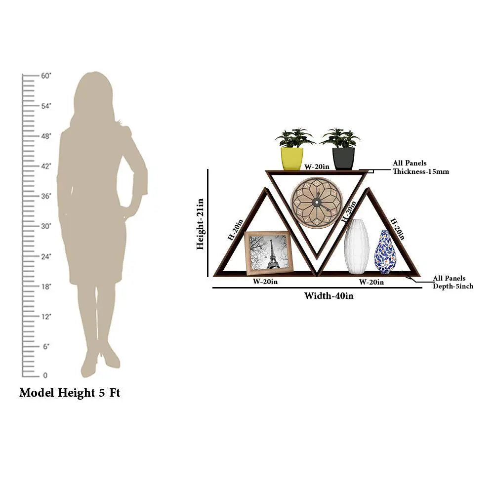 Beautiful Tringle Shape Set of 3 Wood Wall Shelf / Book Shelf, Walnut Finish