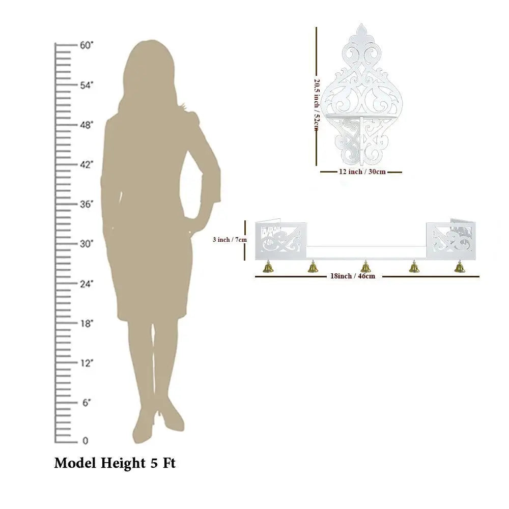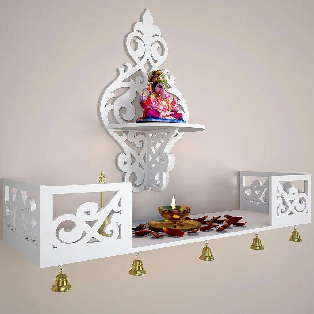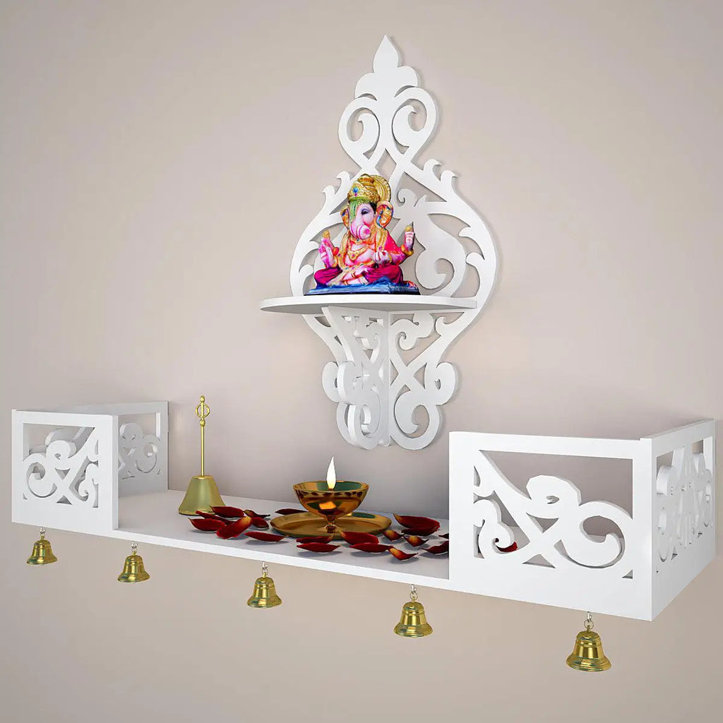 Beautiful Wall Hanging Wooden Temple/ Pooja Mandir Design with Shelf, White Color