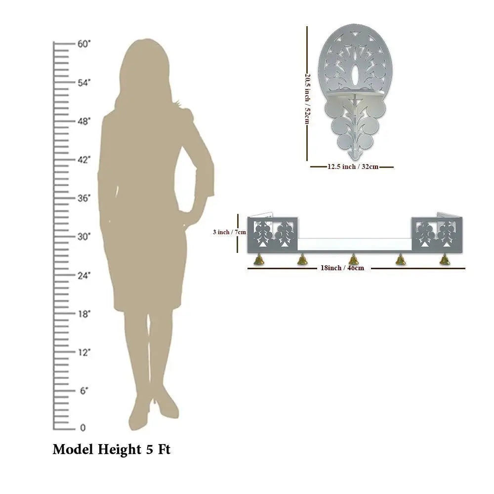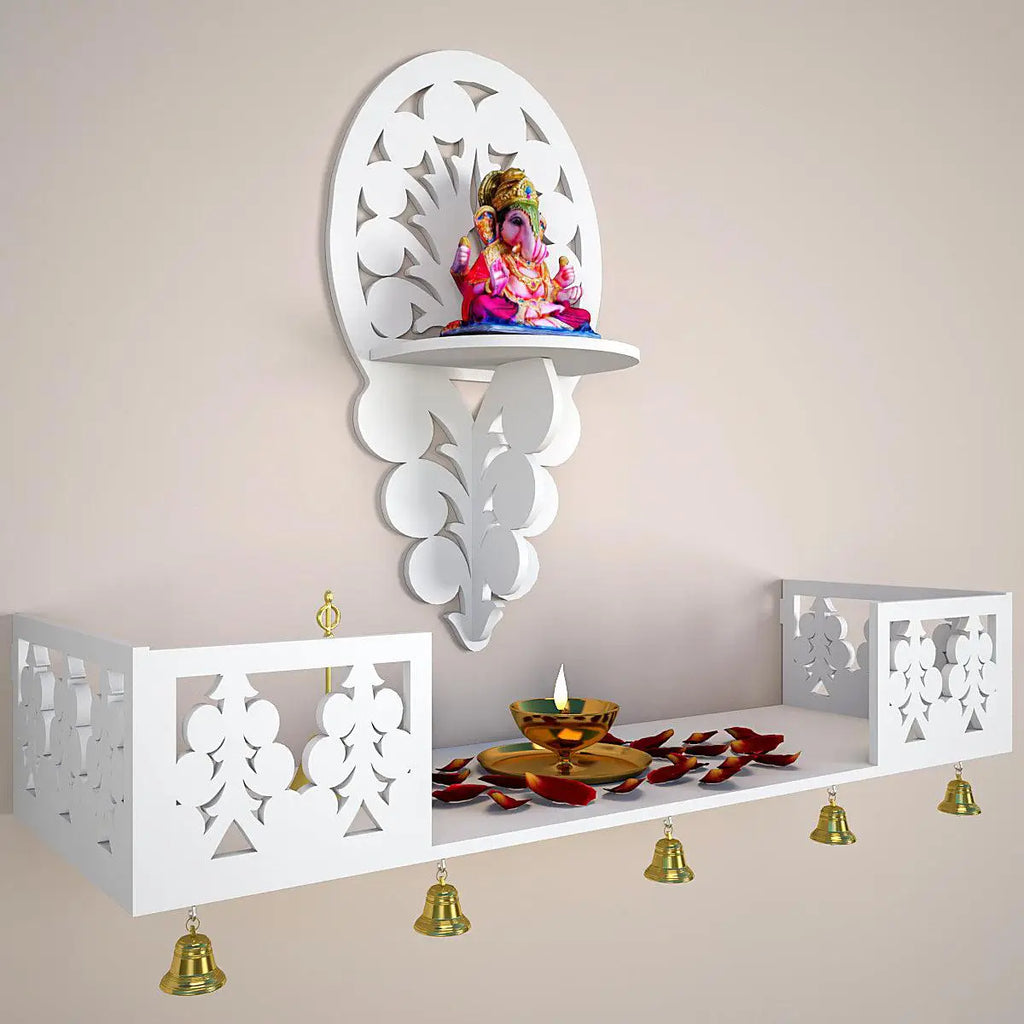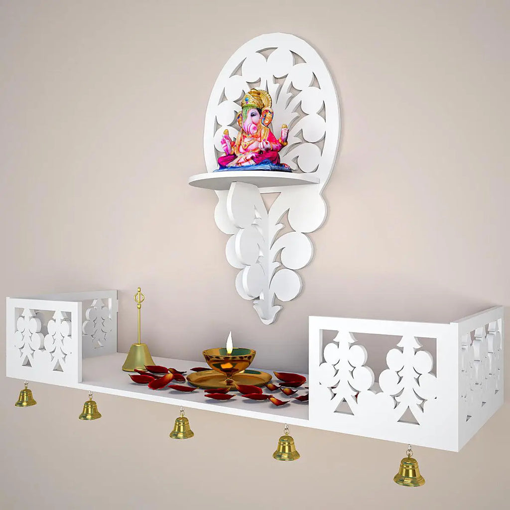 Beautiful Wall Hanging Wooden Temple/ Pooja Mandir Design with Shelf, White Color