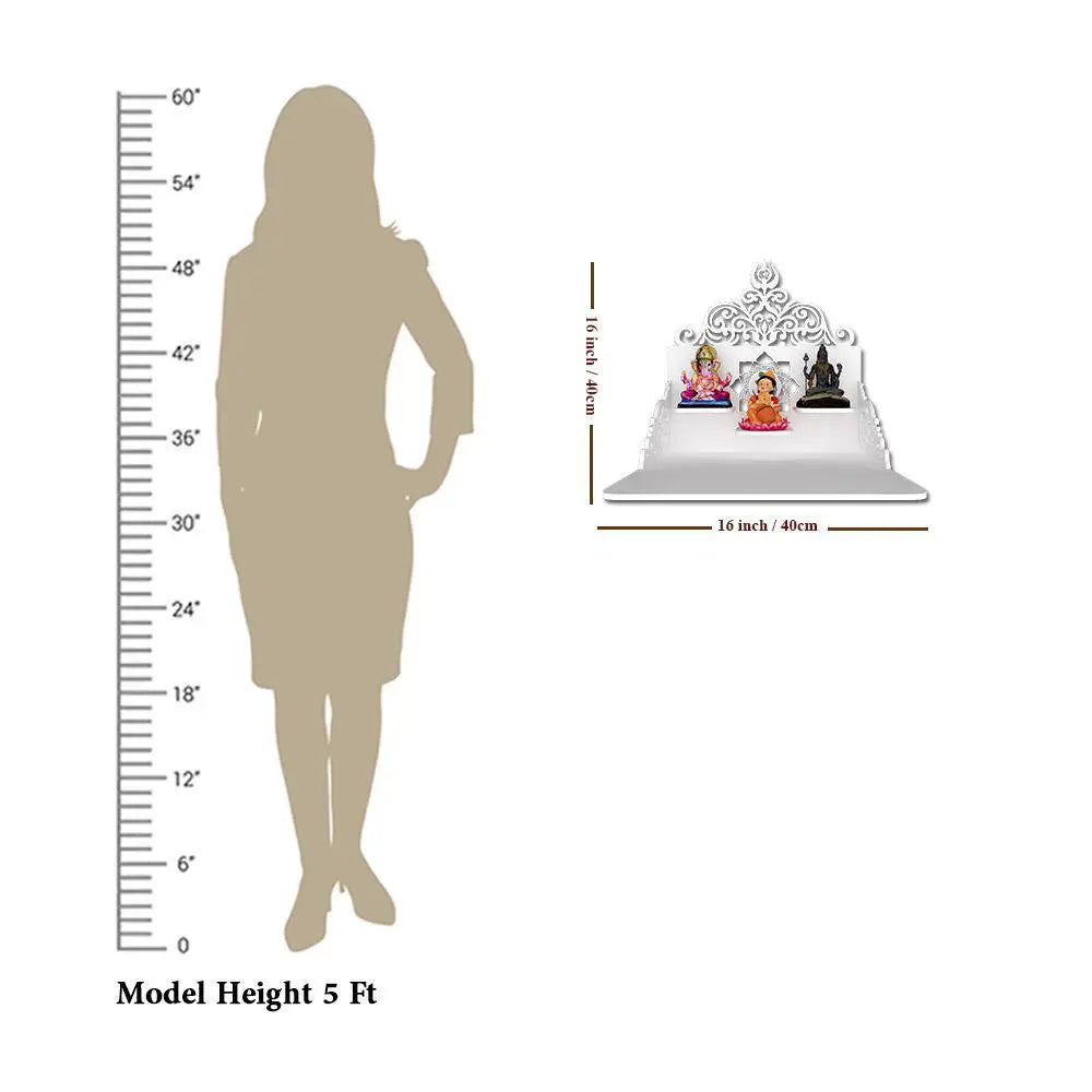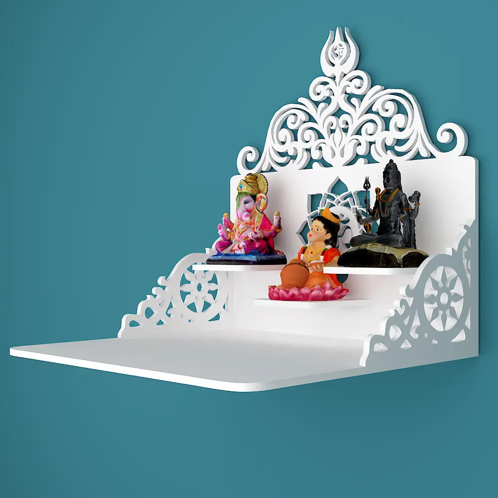 Beautiful Wall Wooden Temple/ Pooja Mandir Design with Shelf, White Color