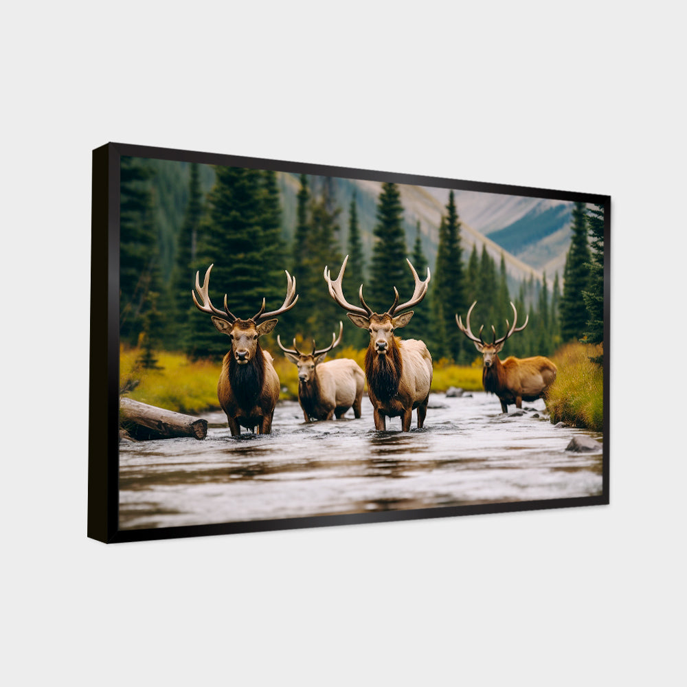 Beautiful Wild Autumn Mist Elk Nature Canvas Printed Wall Paintings & Arts