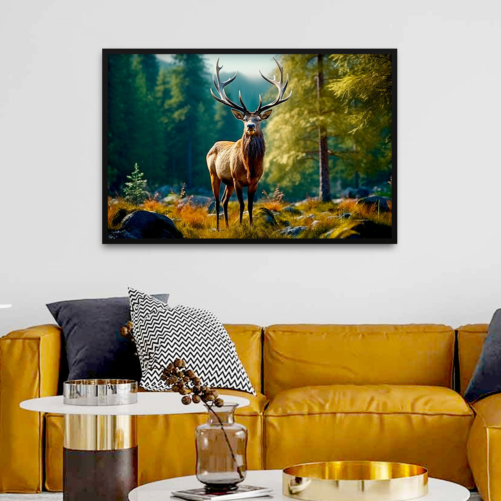 Beautiful Wild Single Elk with Nature Canvas Printed Wall Paintings & Arts