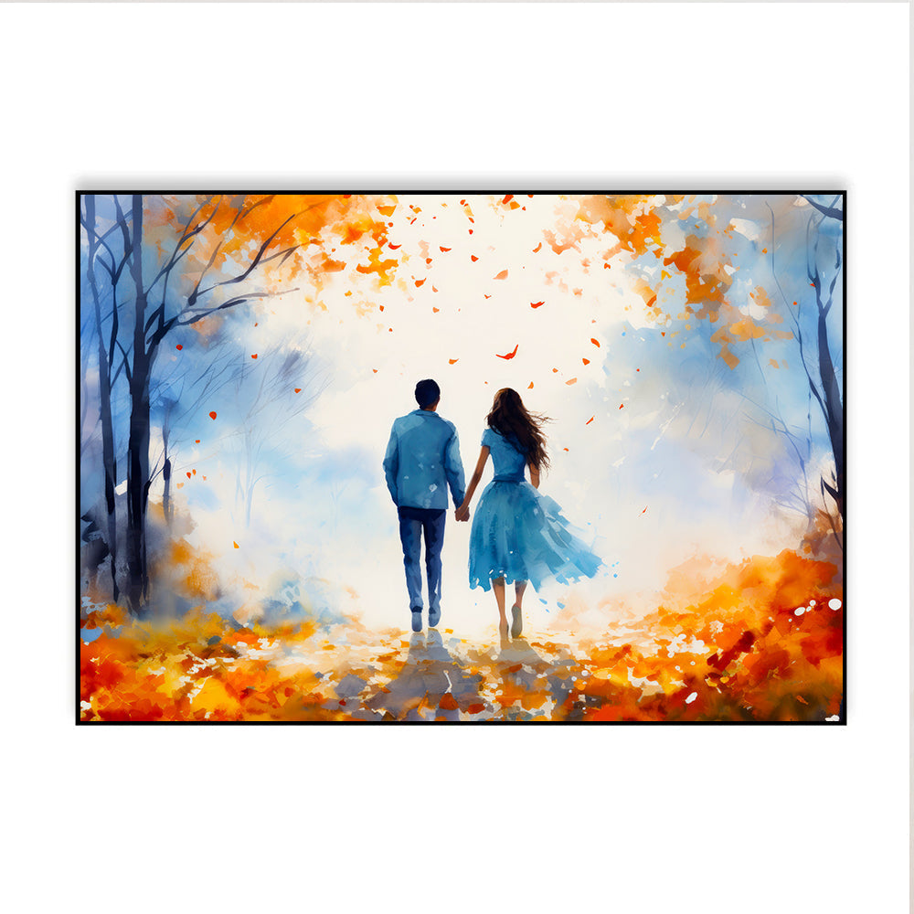 Beautiful Young Couple Walking in Autumn Park Canvas Wall Paintings & Arts