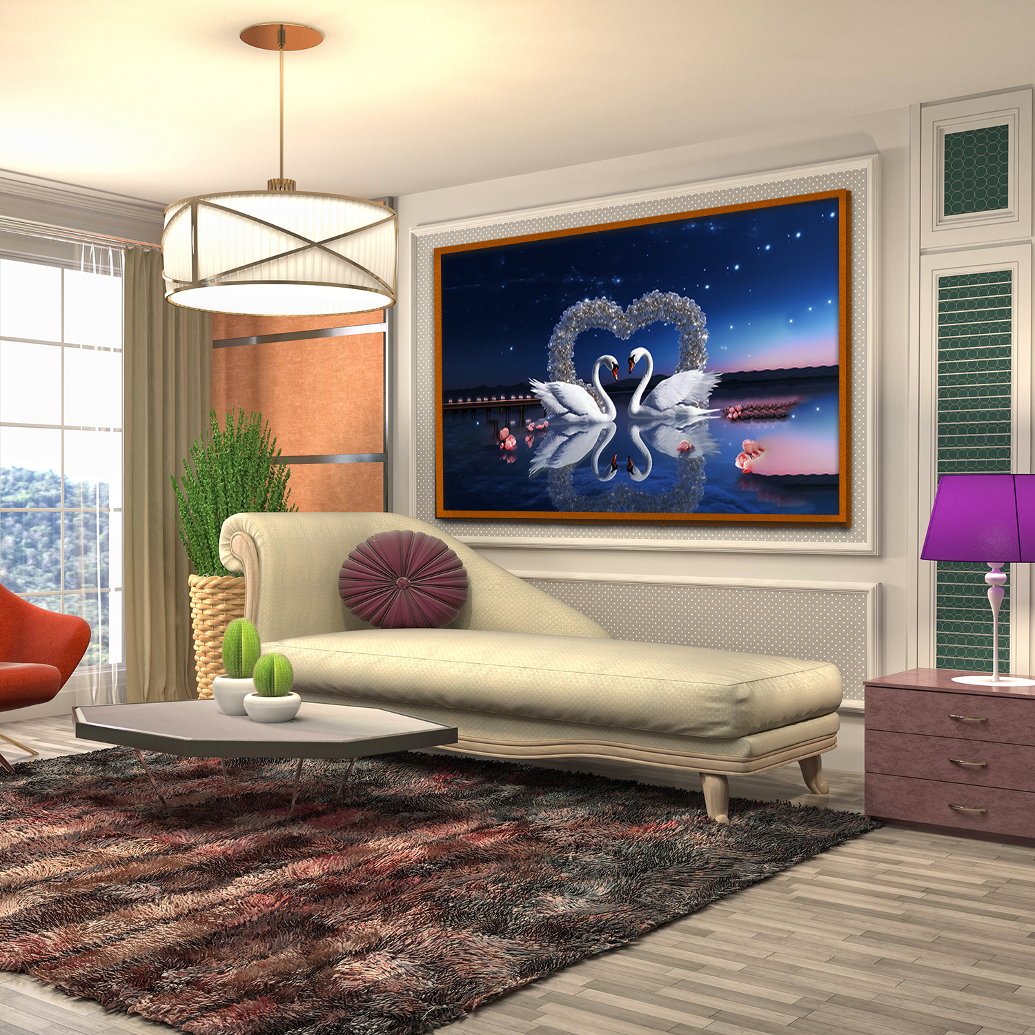 Beautifull Couple Swans Birds Forming Heart With Words Love It Canvas Wall Paintings