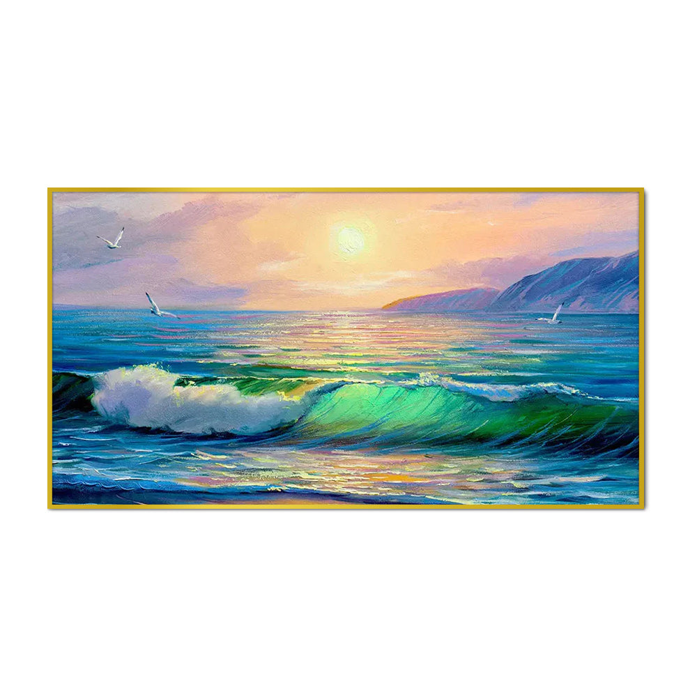 Big Panoramic Beautiful Sea Sunset  Scenery Canvas Painting