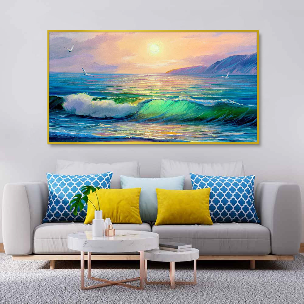 Big Panoramic Beautiful Sea Sunset Scenery Canvas Painting