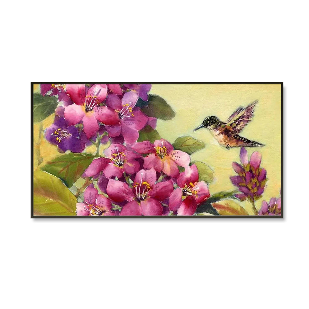 Beautiful Flower Bunch and Humming Bird Canvas Wall Painting