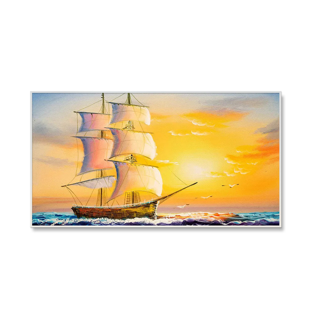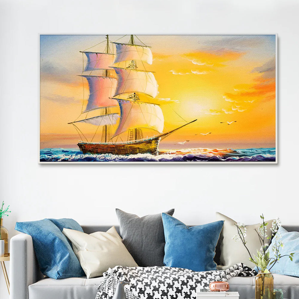 Beautiful Ship in the Sea Scenery Canvas Wall Painting