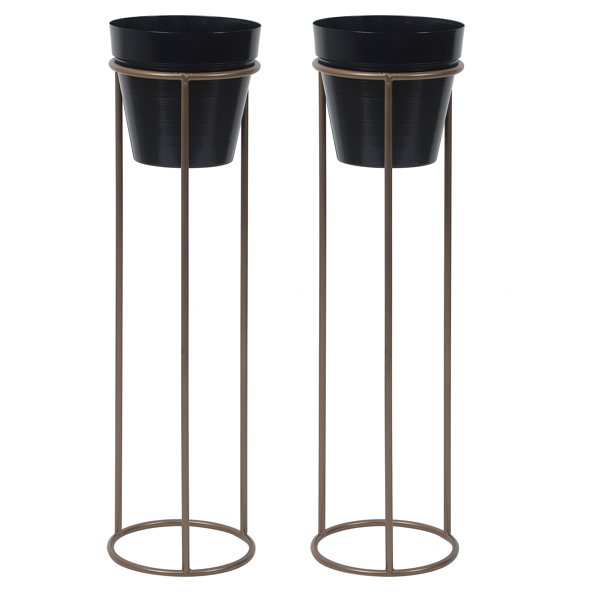 Big Pot Shape Planter Gold & Black Planter Stand Set of 2