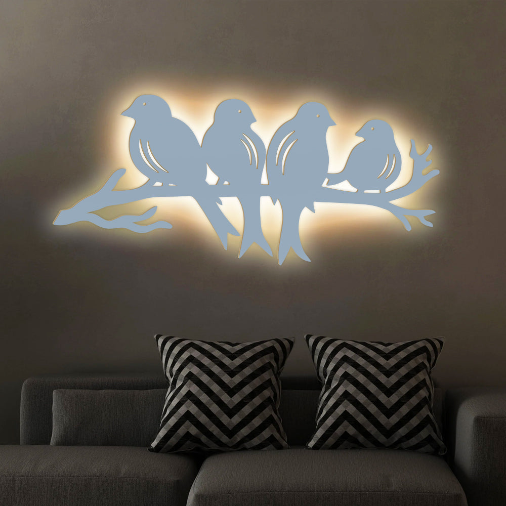 Birds Sitting on Branch Backlit Wooden Wall Decor with LED Night Light Walnut Finish