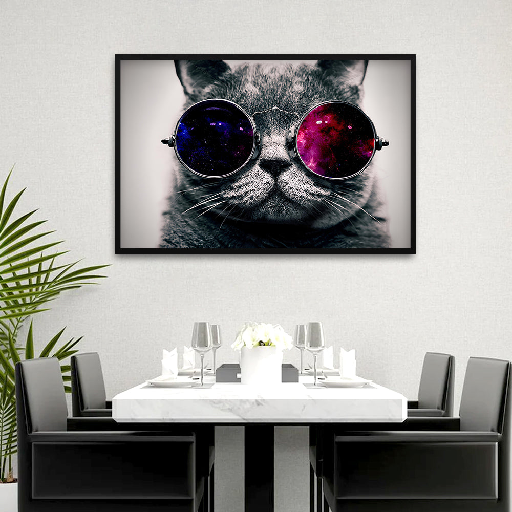 Black Cat Face on Specticle Canvas Printed Wall Paintings & Arts
