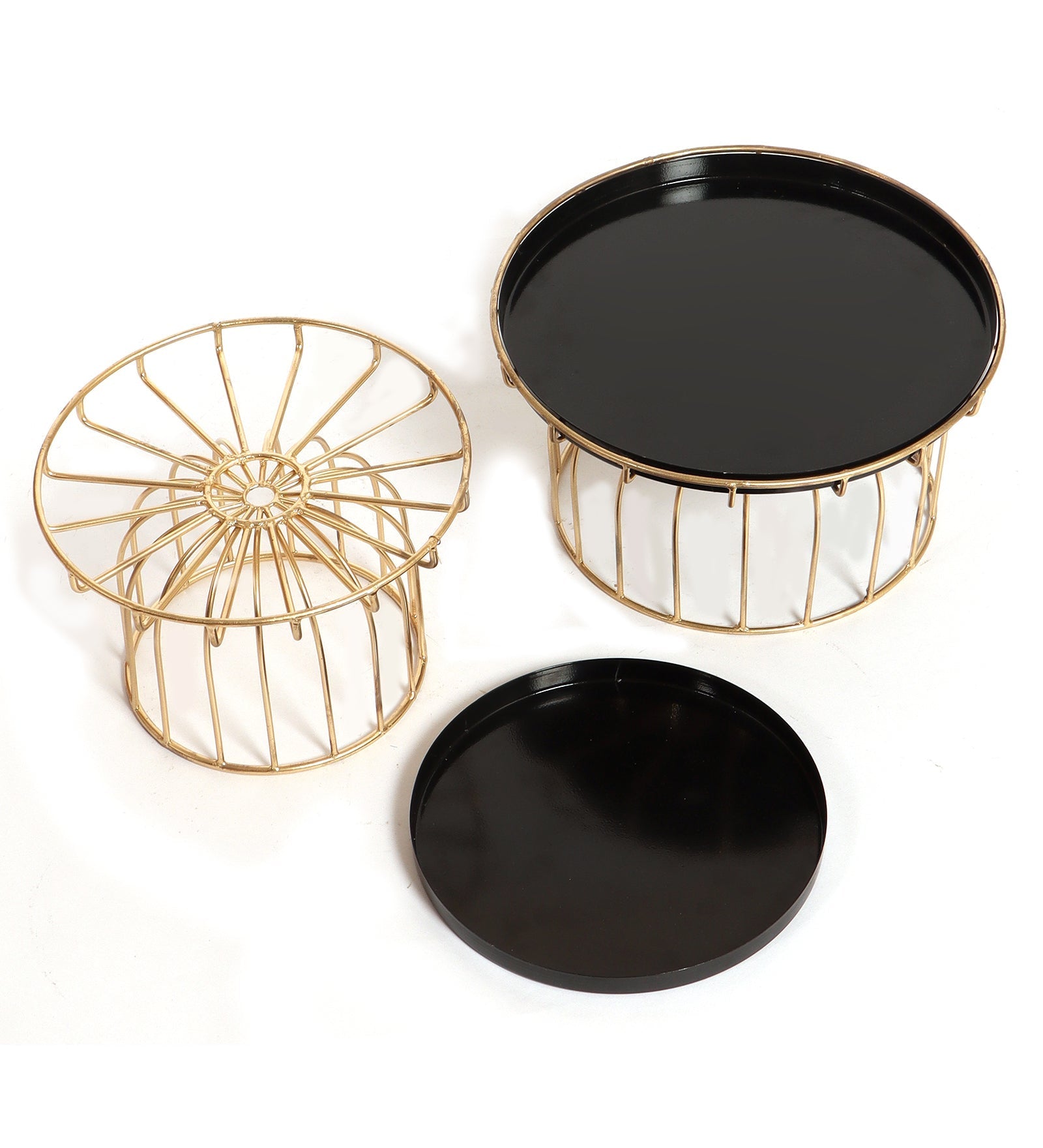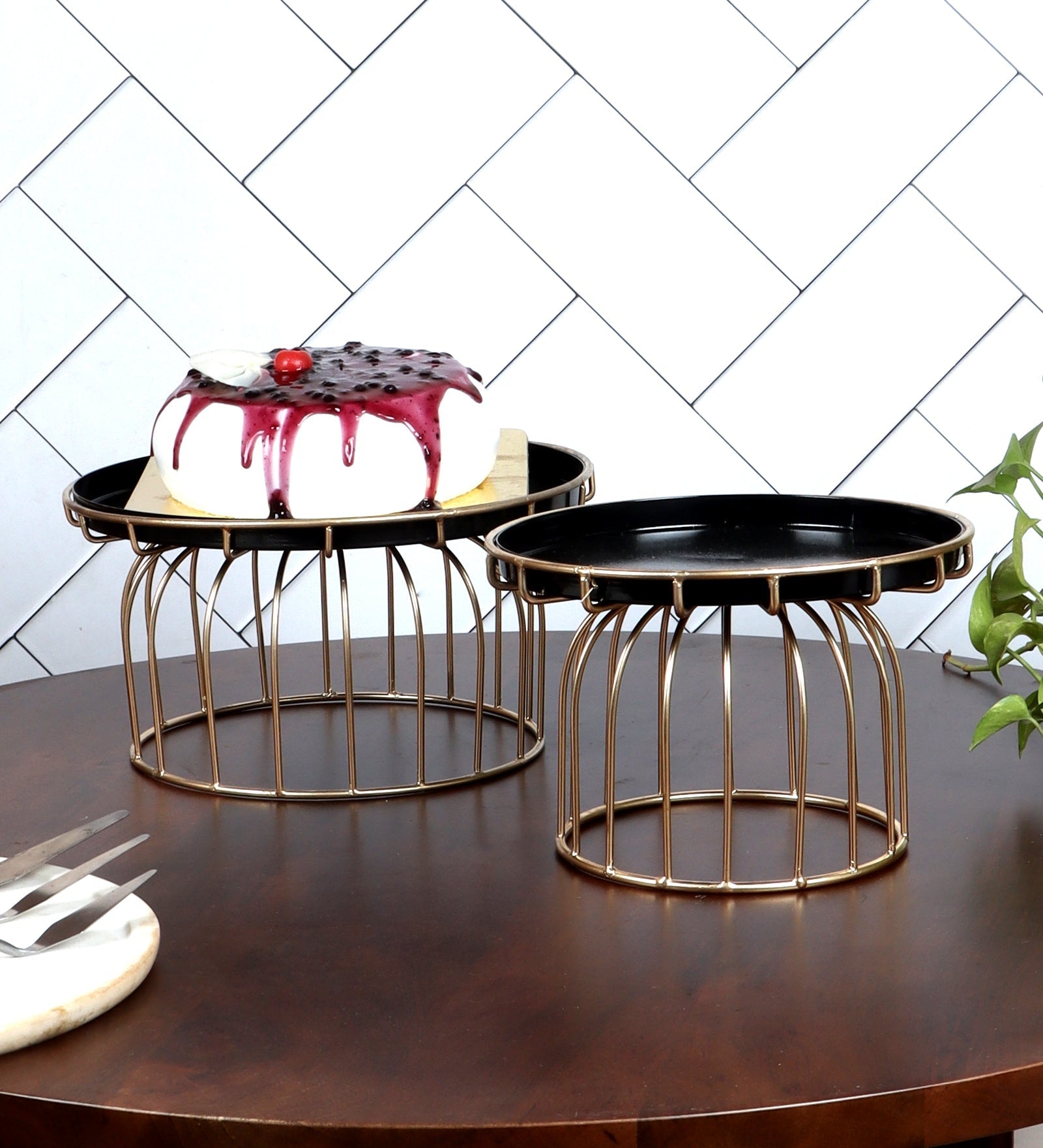Black & Gold Metal Cake Platter Set of 2