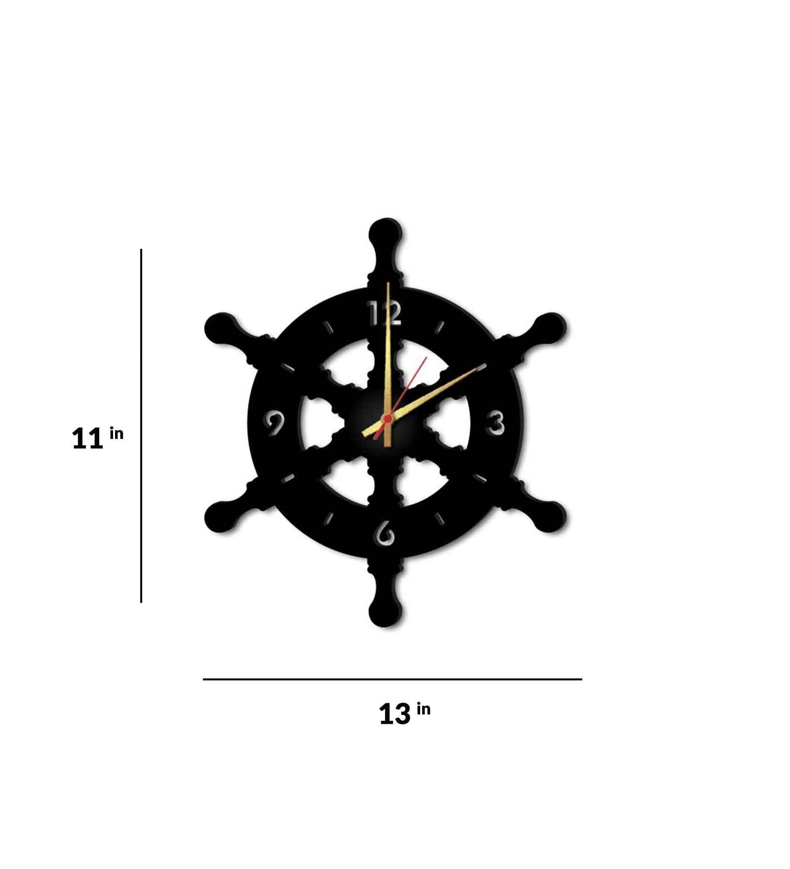 Black MDF Ship Wheel Modern Wall Clock