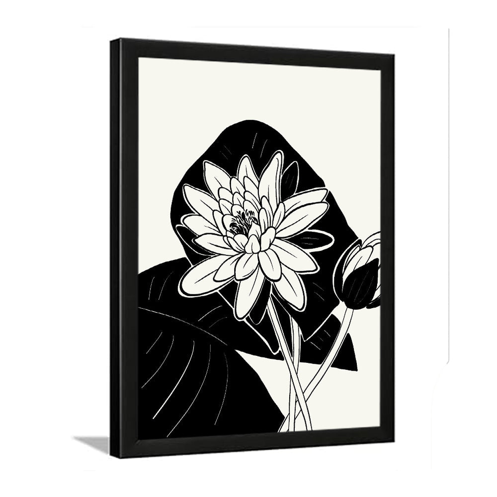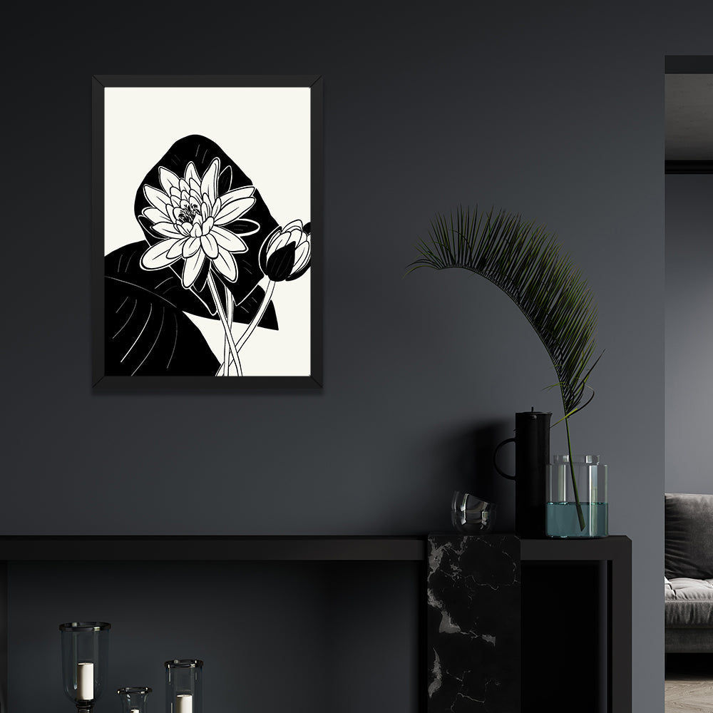 Black & White Abstract Lotus Floral Wall Art Photo Frame Painting